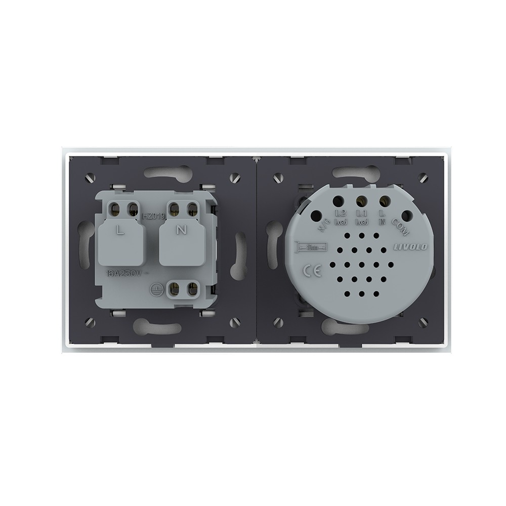 Сенсорный выключатель комбинированный на 1 линию 1 розетка 2 модуля Белый Livolo в Орске