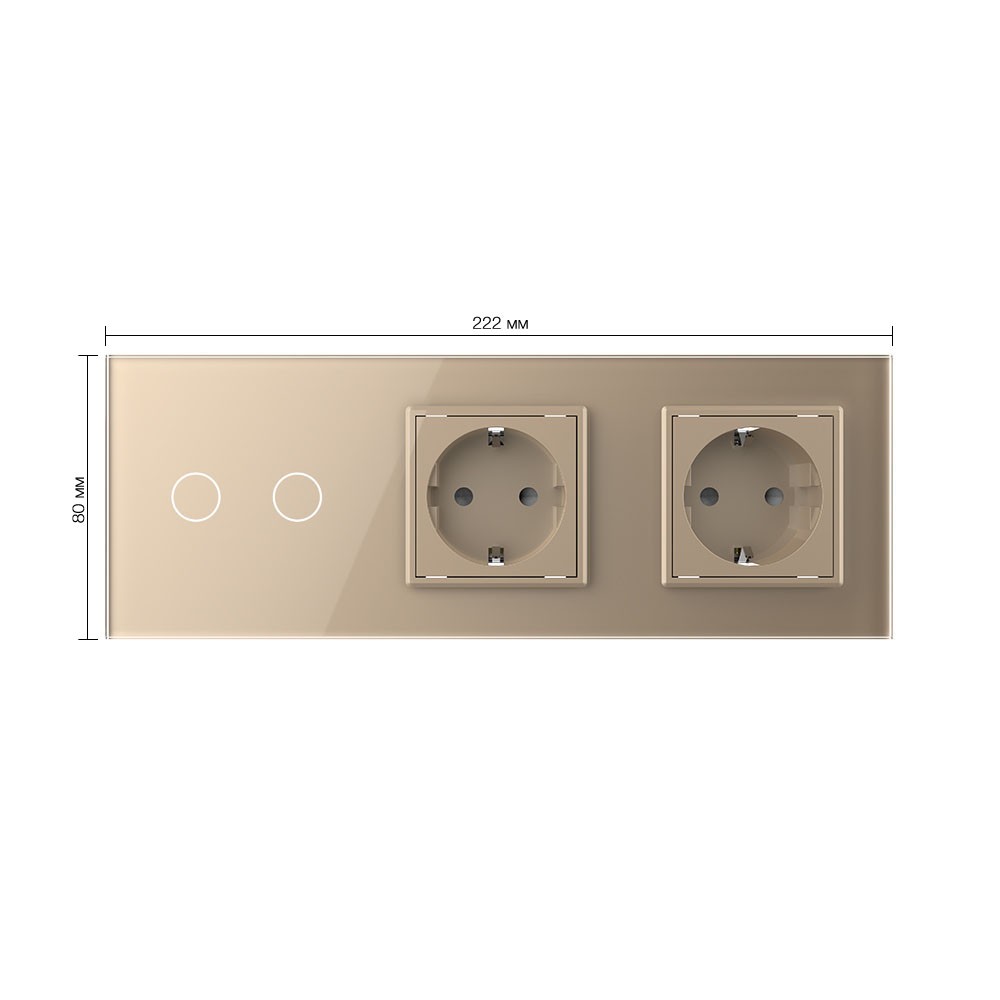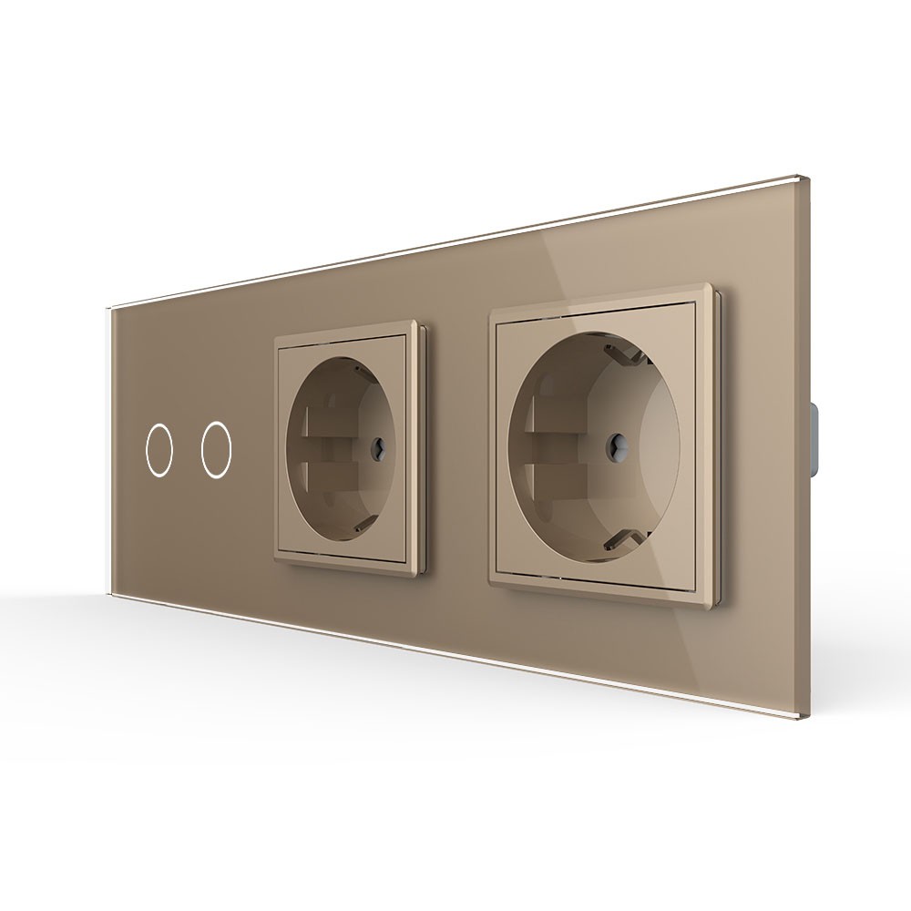 Сенсорный выключатель комбинированный на 2 линии 2 розетки 3 модуля Золотой Livolo в Орске