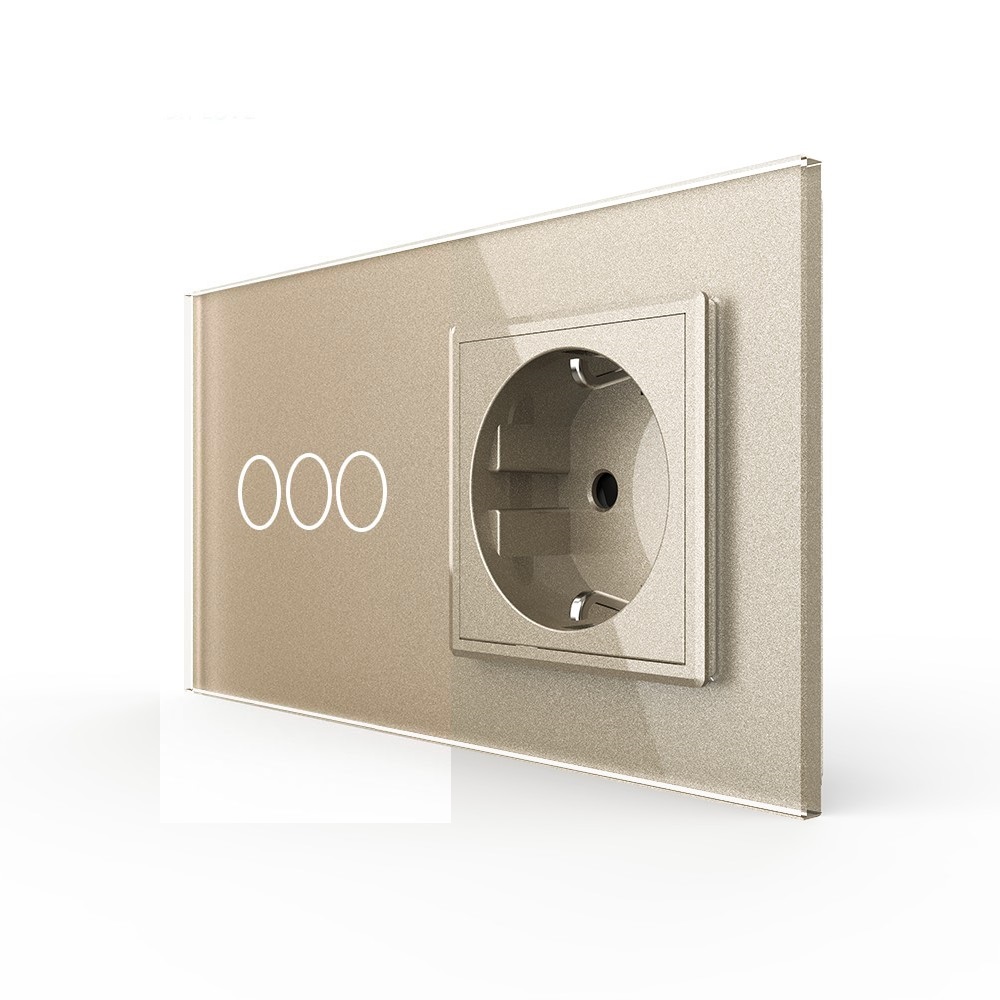 Трехклавишный сенсорный выключатель с розеткой 2 поста, цвет шампань Livolo в Орске
