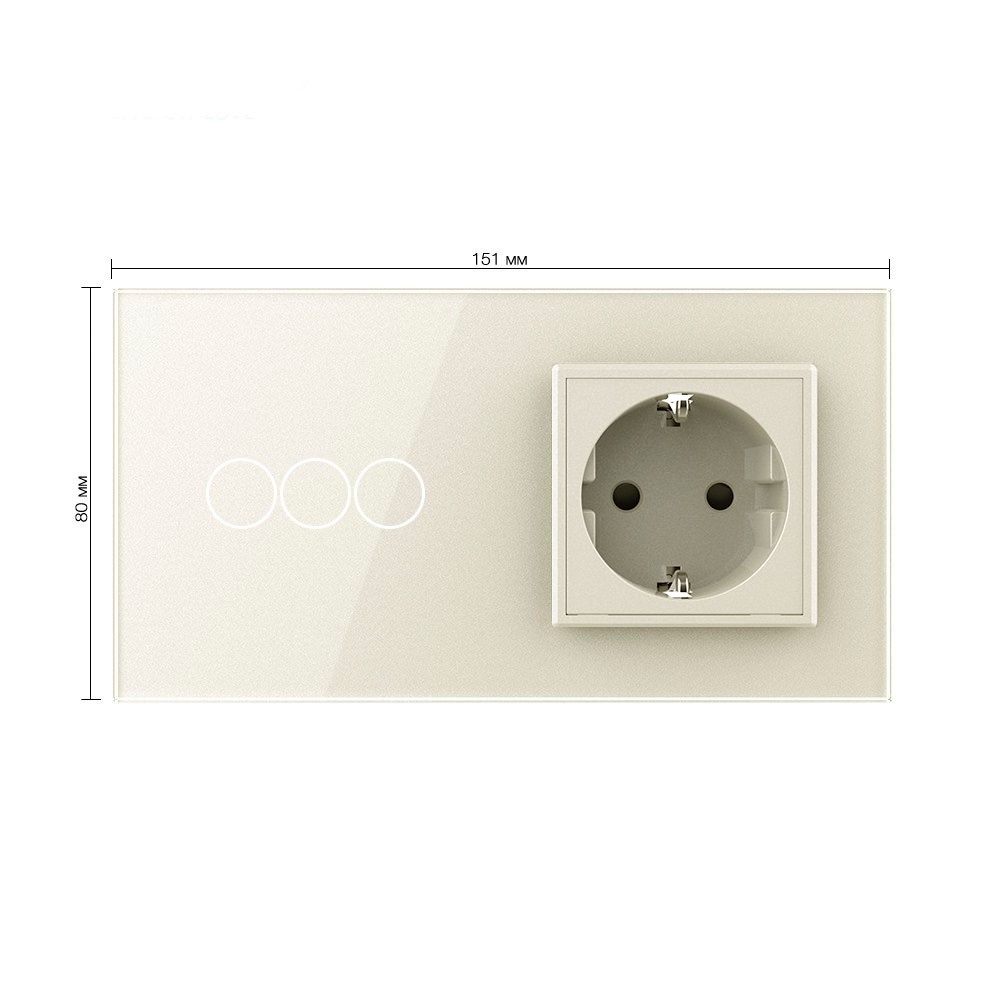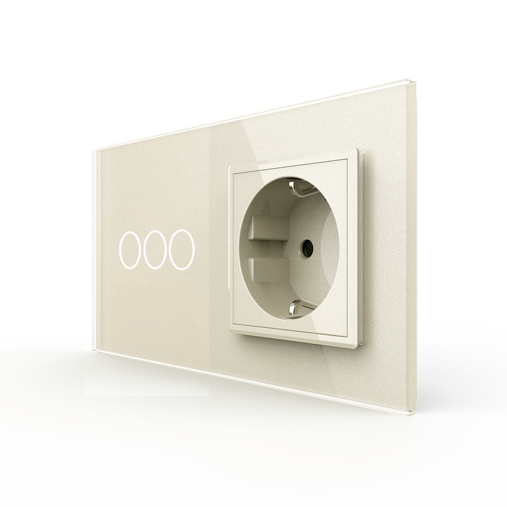 Трехклавишный сенсорный выключатель с розеткой 2 поста, цвет жемчужный Livolo в Орске