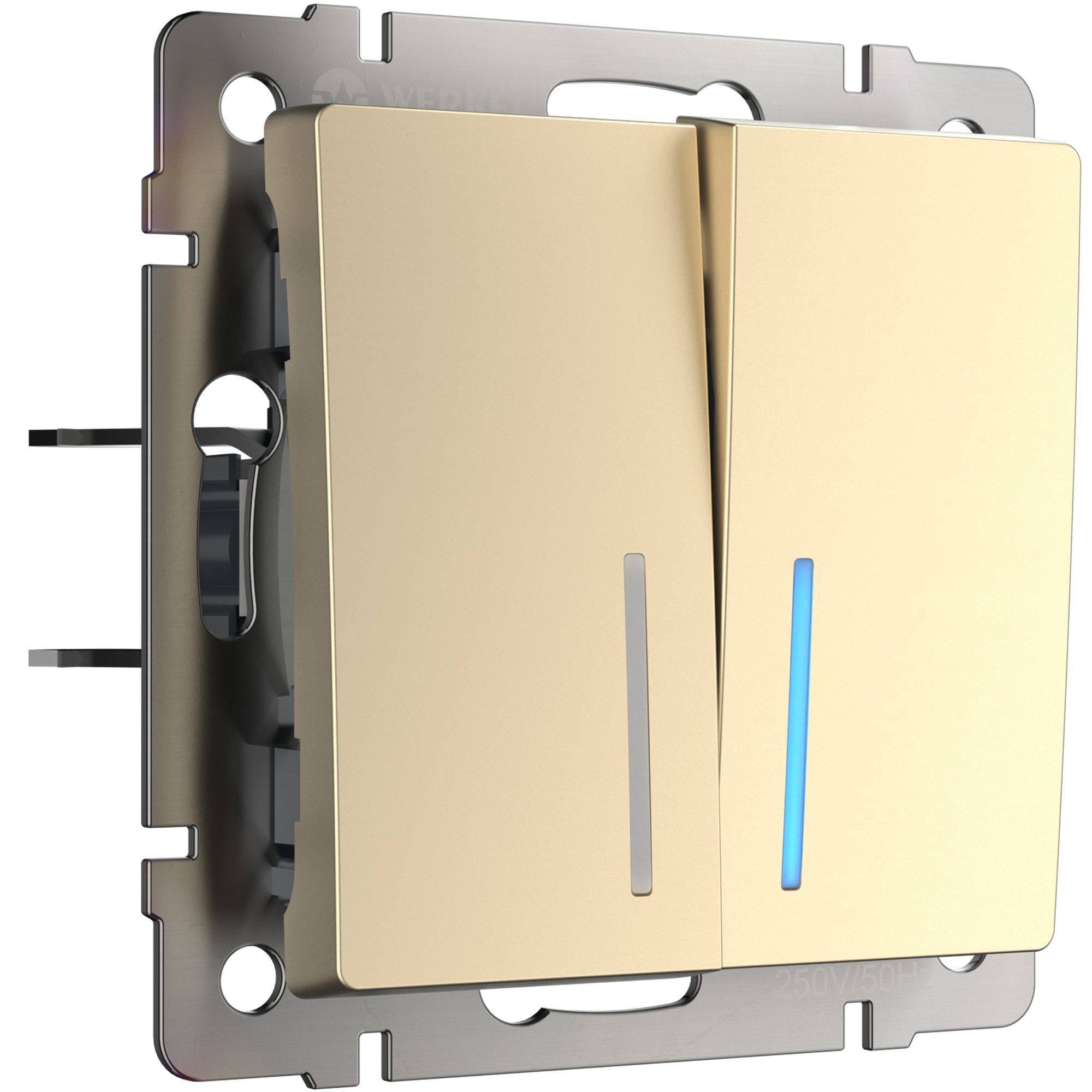 Выключатель двухклавишный проходной с подсветкой (шампань) СУ IP20 Werkel в Орске