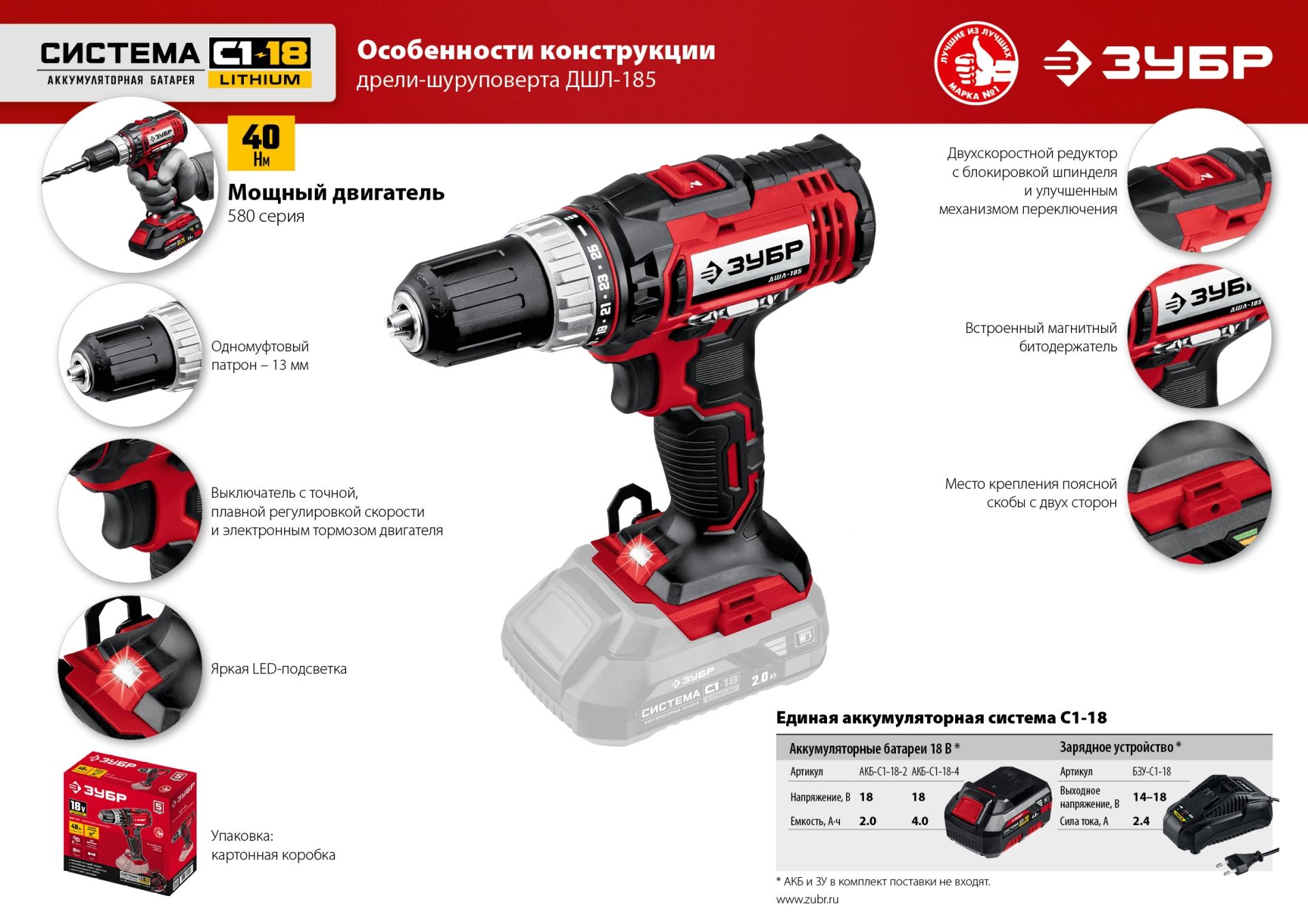 18В, без АКБ, в коробке, дрель-шуруповерт. ДШЛ-185 ЗУБР доступен в интернет‑магазине ВольтМаркет в Орске. Покупая у нас, вы получаете дополнительные преимущества: