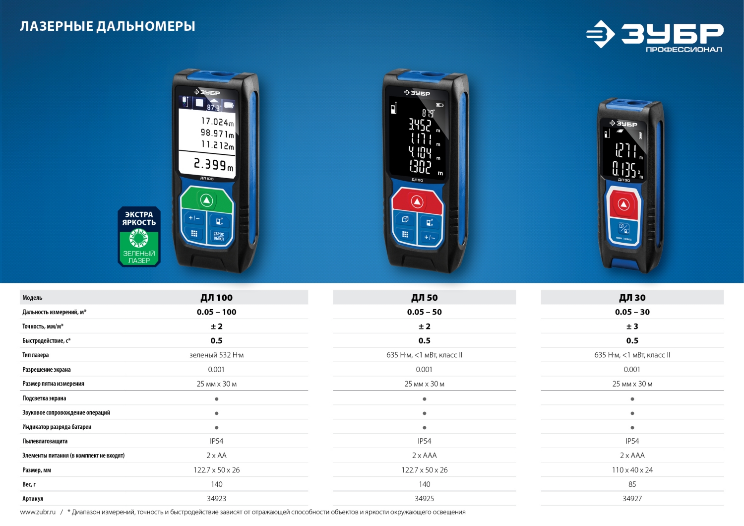 Дальномер лазерный "ДЛ-30", точность 3мм, дальность 30м, класс защиты IP54, Профессионал 34927 ЗУБР доступен в интернет‑магазине ВольтМаркет в Орске. Покупая у нас, вы получаете дополнительные преимущества: