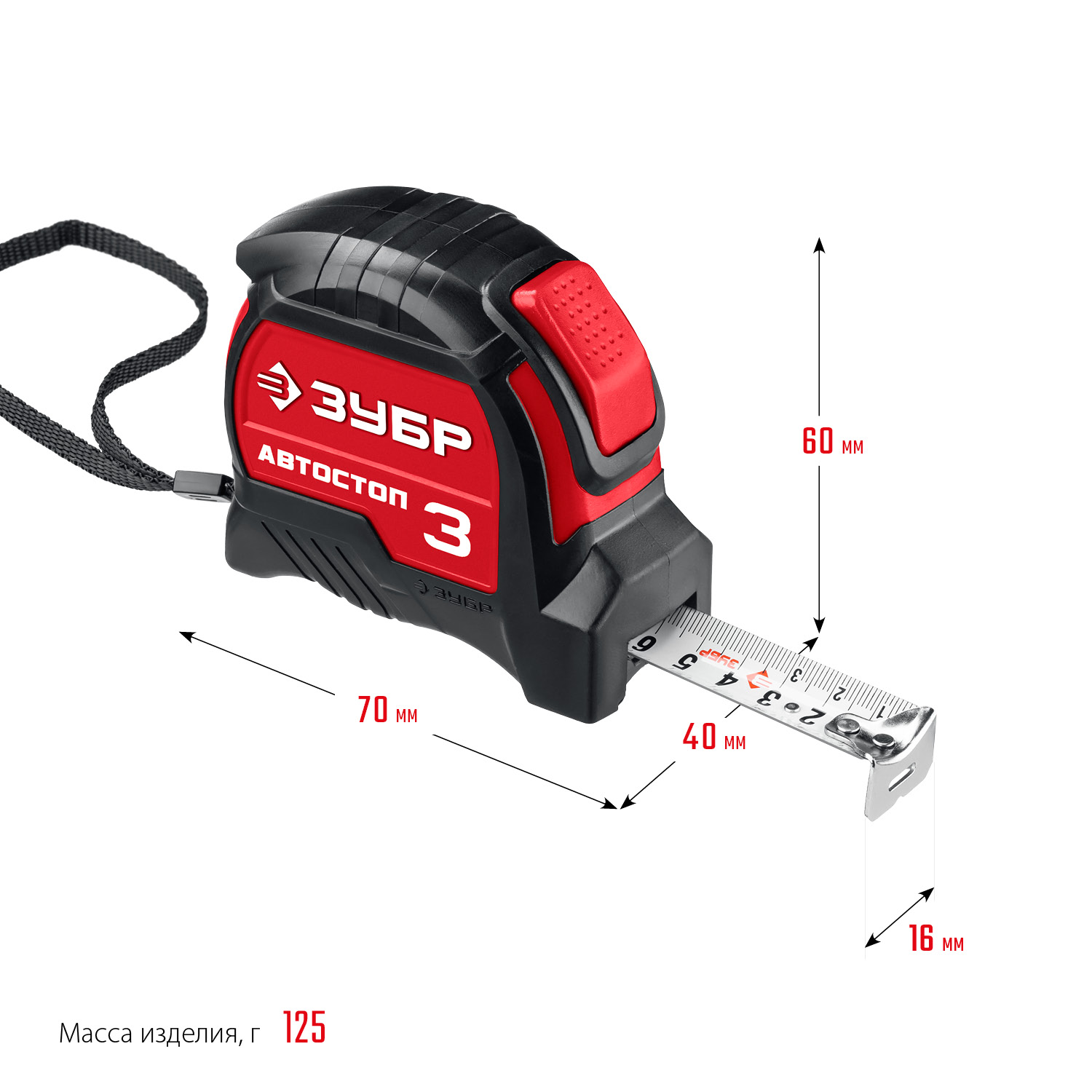Рулетка с автостопом Автостоп 3м х 16мм ЗУБР в Орске