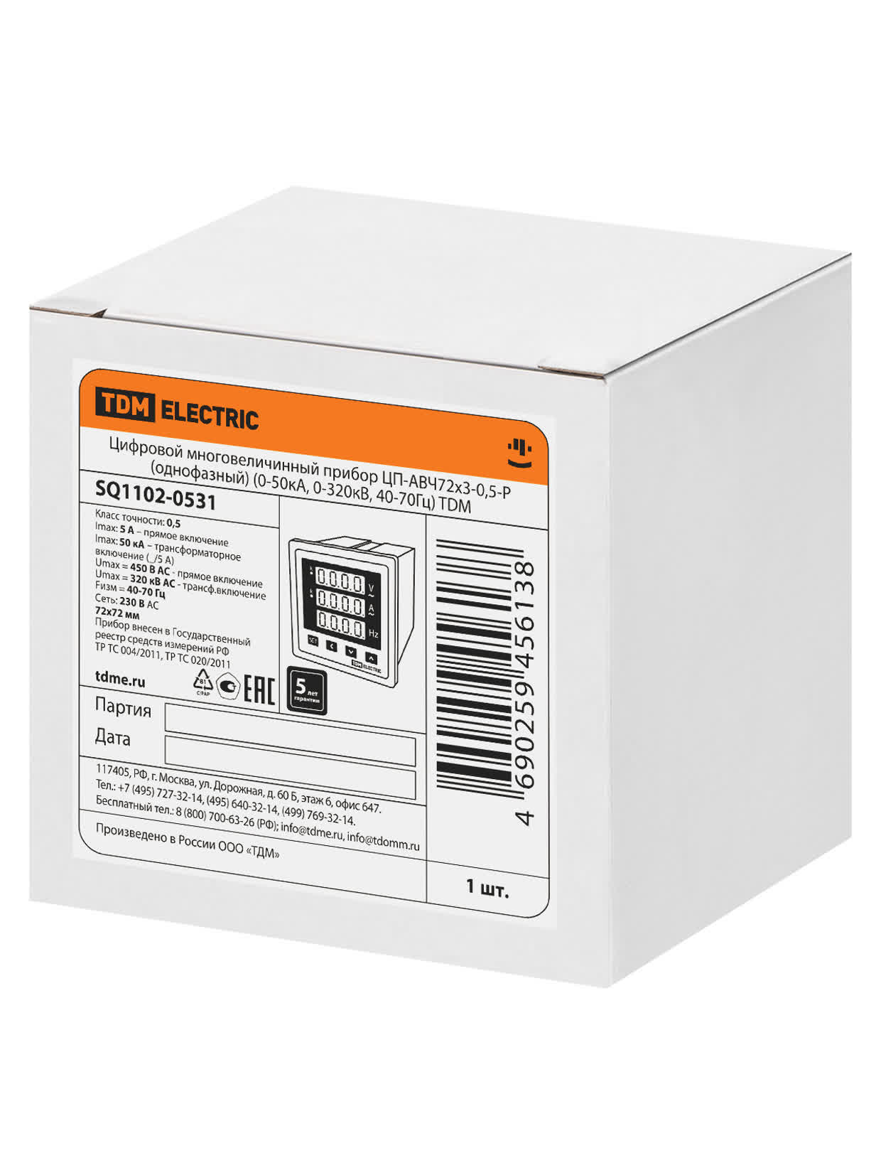 Цифровой многовеличинный прибор ЦП-АВЧ72х3-0,5-Р (однофазный) (0-50кА, 0-320кВ, 40-70Гц) TDM в Орске