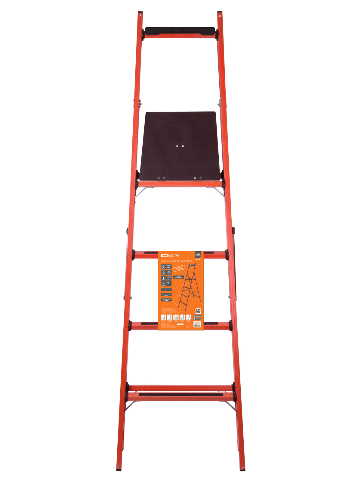 Стремянка диэлектрическая СД-1.5, 4 ступени, высота площадки 1,5 м, до 50 кВ, "ЭкспертЭлектрик" TDM в Орске