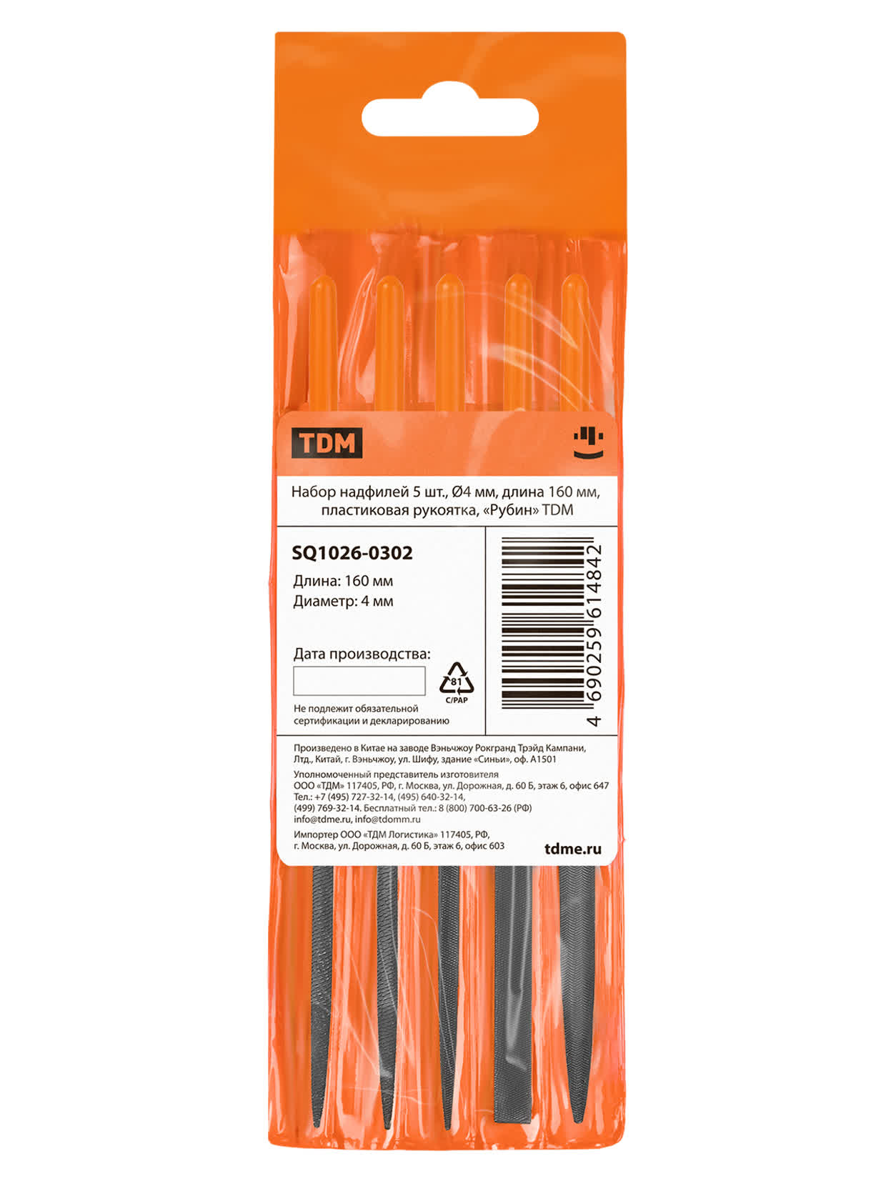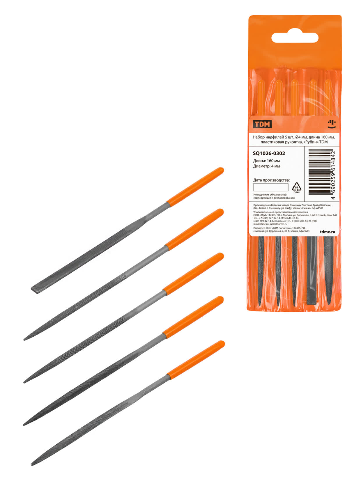 Набор надфилей 5 шт, Ø4 мм, длина 160 мм, пластиковая рукоятка, "Рубин" TDM в Орске