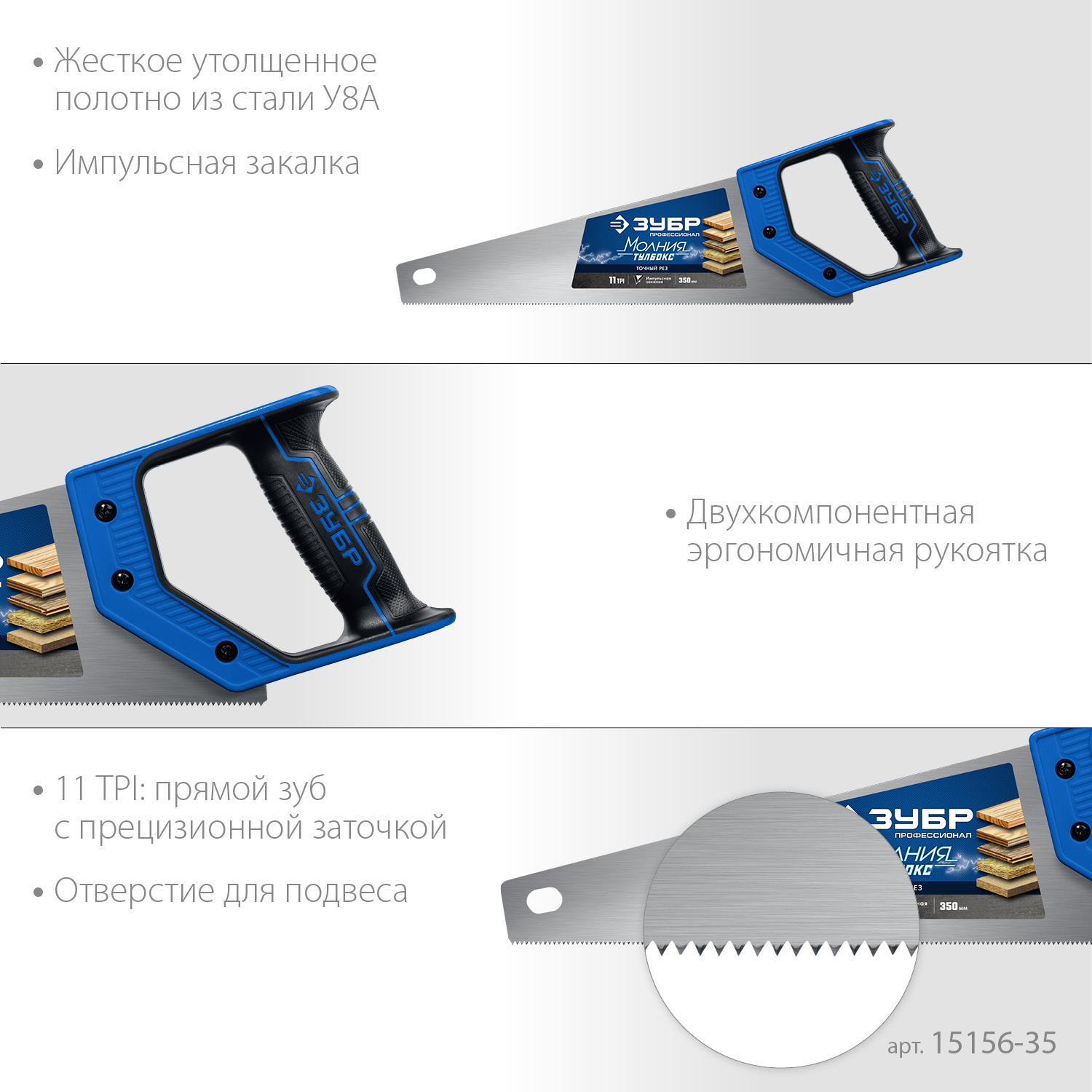 Ножовка компактная (пила) "МОЛНИЯ-Тулбокс" 350 мм, 11 TPI, прямой зуб, точный рез, импульсная закалка каждого зуба, ЗУБР доступен в интернет‑магазине ВольтМаркет в Орске. Покупая у нас, вы получаете дополнительные преимущества: