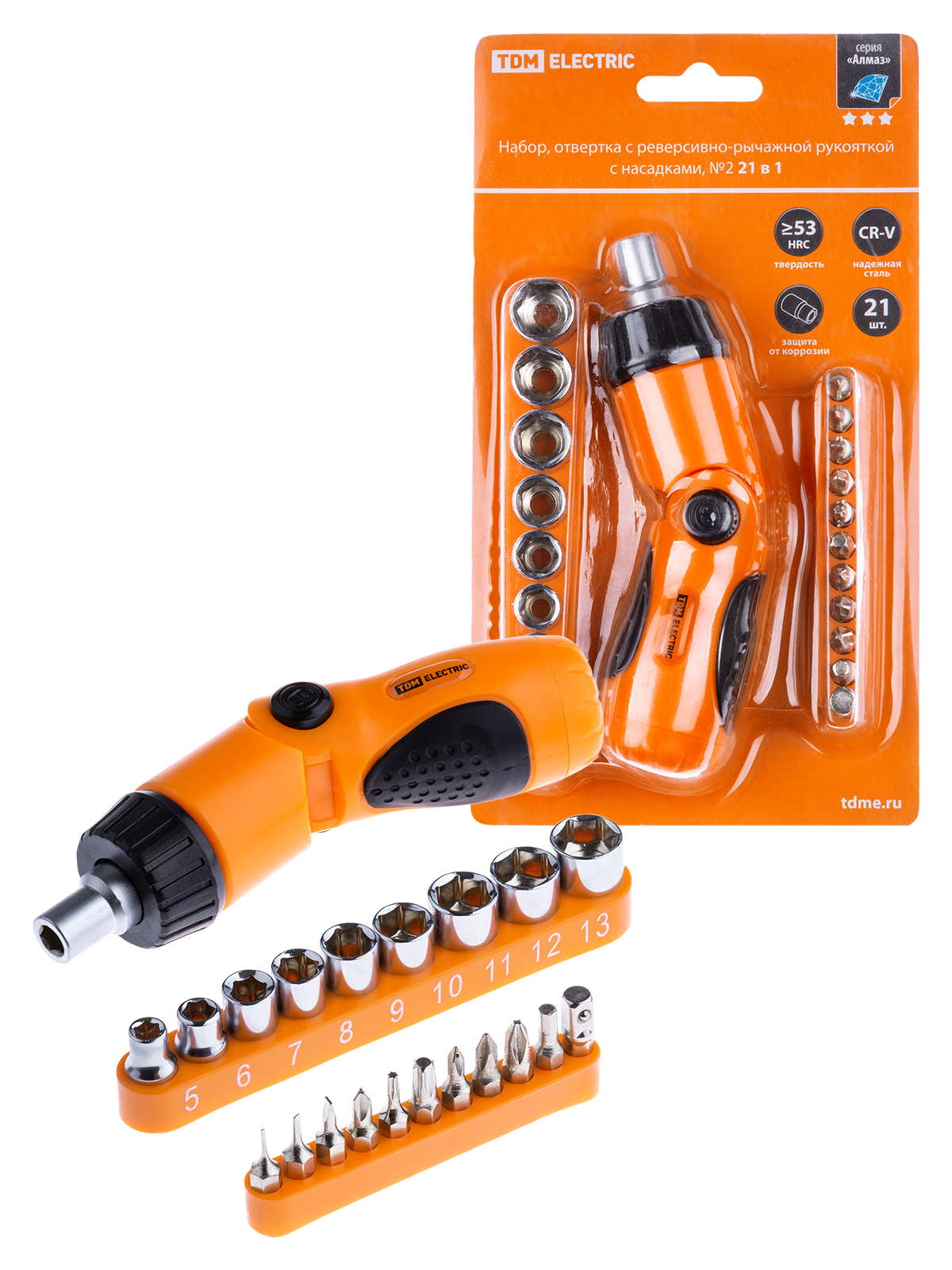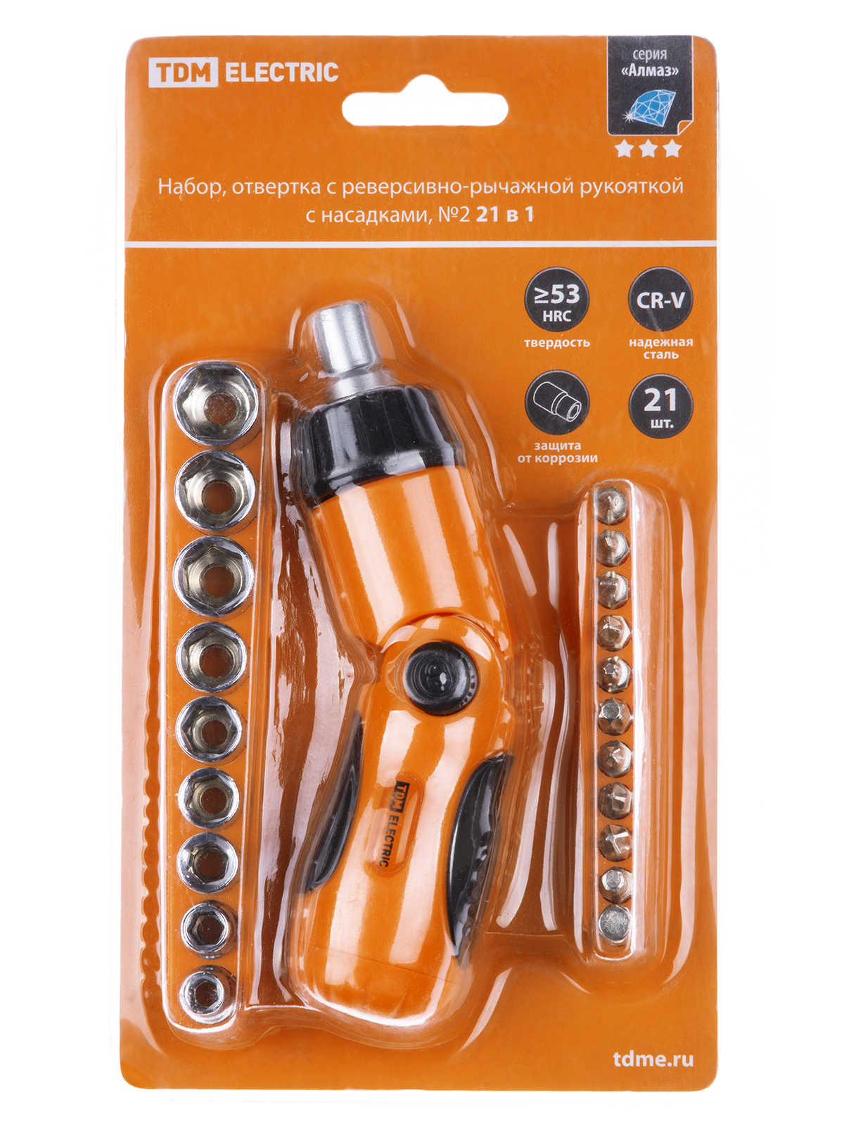 Набор, отвертка с реверсивно-рычажной рукояткой с насадками, №2, 21 предмет "Алмаз" TDM в Орске