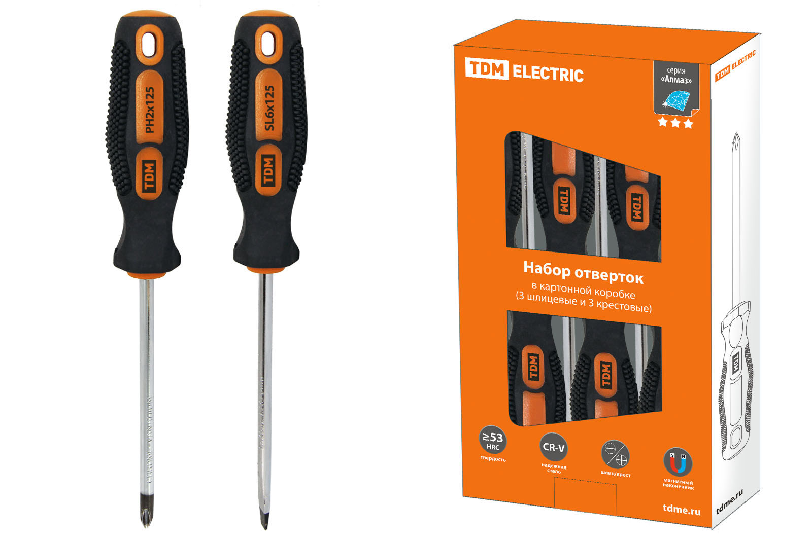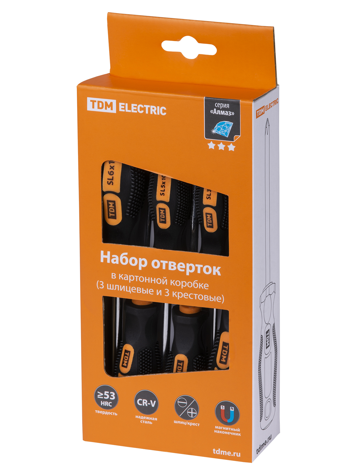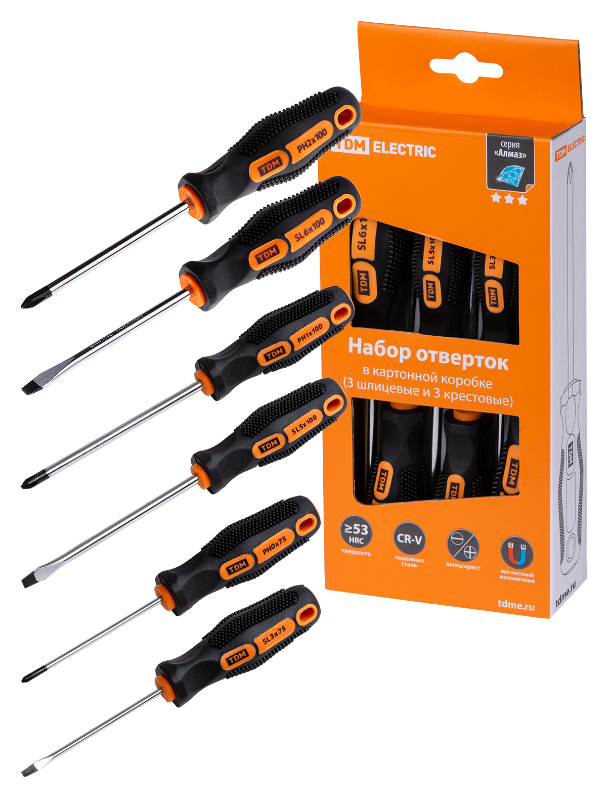 Набор отверток 6 шт.: SL:3х75;5х100;6х100, PH:0х75;1х100;2х100 (карт. коробка), CR-V "Алмаз" TDM в Орске