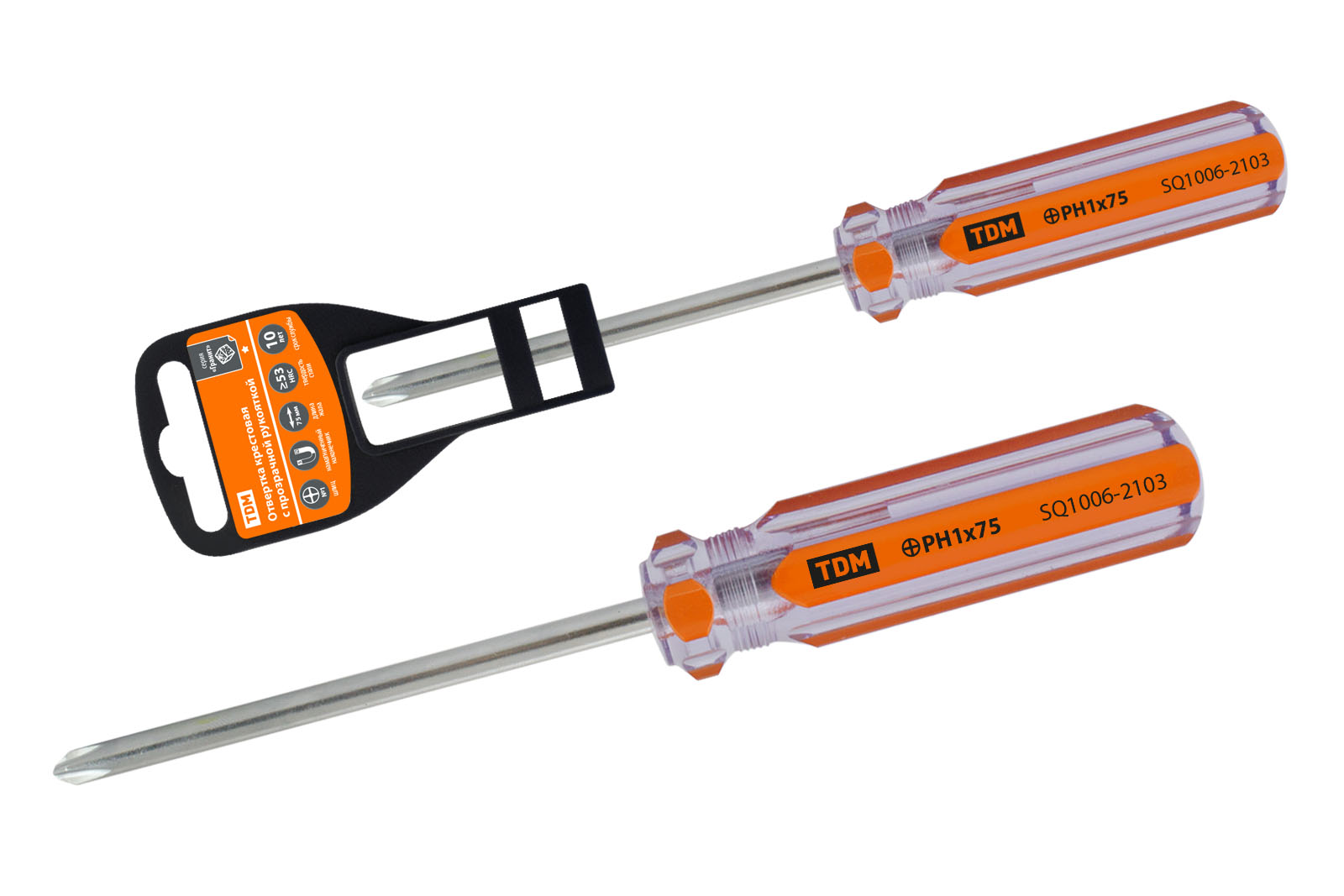 Отвертка крестовая, прозрачная рукоятка, углеродистая сталь, тип PH1 x 75 мм, серия "Гранит" TDM доступен в интернет‑магазине ВольтМаркет в Орске. Покупая у нас, вы получаете дополнительные преимущества: