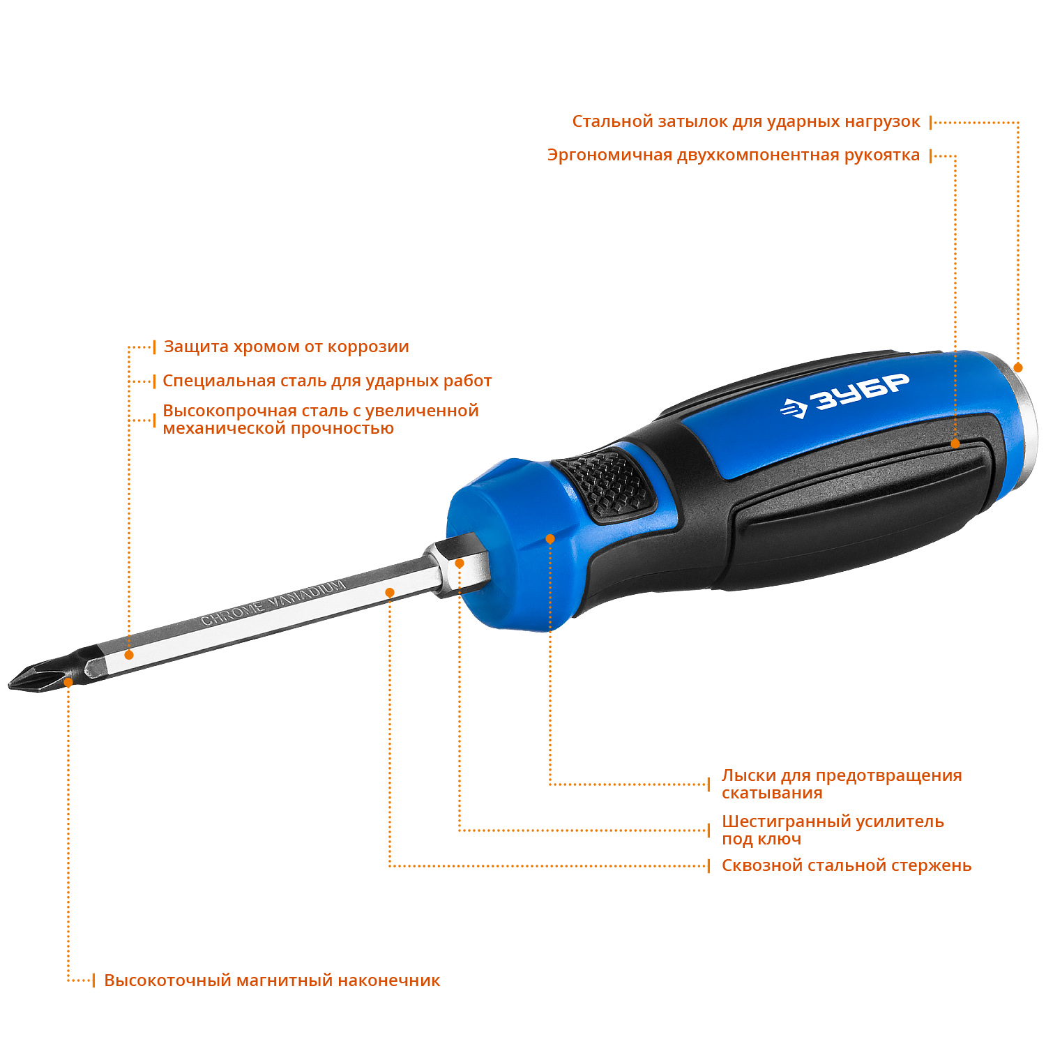 Отвертка ударная, сквозной Cr-V стержень, PH1 x 75 мм, усилитель под ключ, магнитный наконечник, двухкомп. рукоятка, Профессионал, "УДАРНИК" ЗУБР доступен в интернет‑магазине ВольтМаркет в Орске. Покупая у нас, вы получаете дополнительные преимущества: