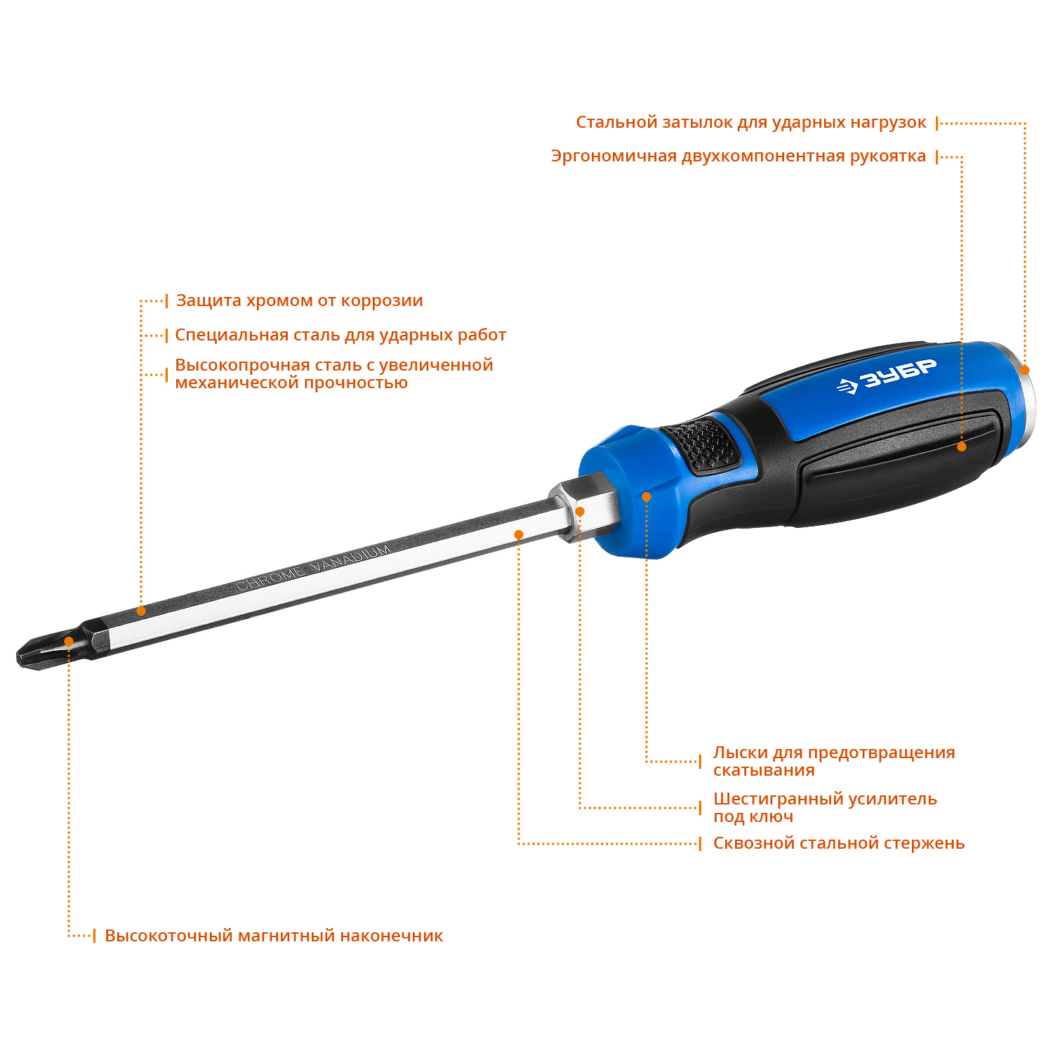 Отвертка ударная, сквозной Cr-V стержень, PH3 x 150 мм, усилитель под ключ, магнитный наконечник, двухкомп. рукоятка, Профессионал, "УДАРНИК" ЗУБР доступен в интернет‑магазине ВольтМаркет в Орске. Покупая у нас, вы получаете дополнительные преимущества: