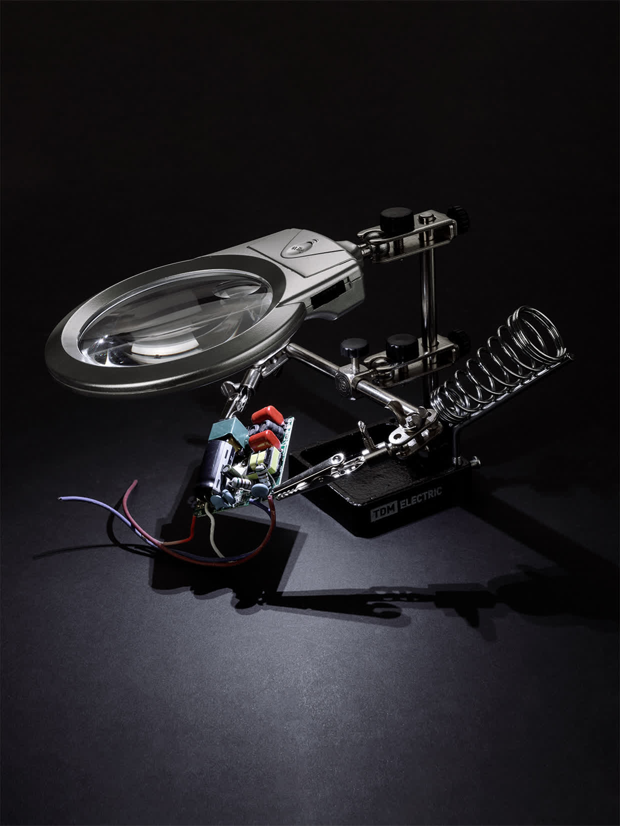 Держатель для пайки многофункциональный ДПМ, 2 зажима "крокодил", лупа с LED подсв., 3хААА, "Алмаз" в Орске
