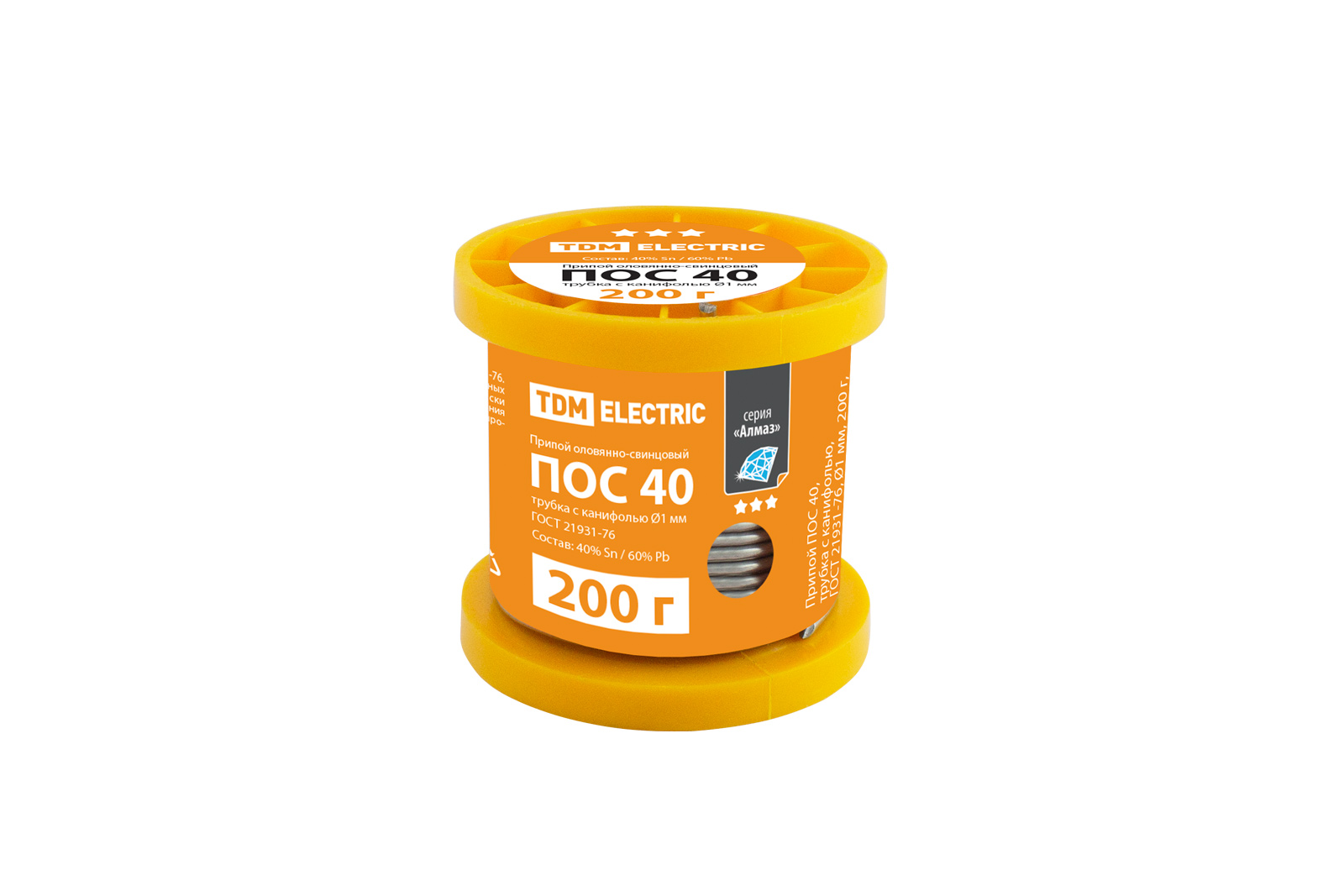 Припой ПОС 40, трубка с канифолью, ГОСТ 21931-76, Ø1 мм, 200 г, катушка, серия "Алмаз" TDM доступен в интернет‑магазине ВольтМаркет в Орске. Покупая у нас, вы получаете дополнительные преимущества: