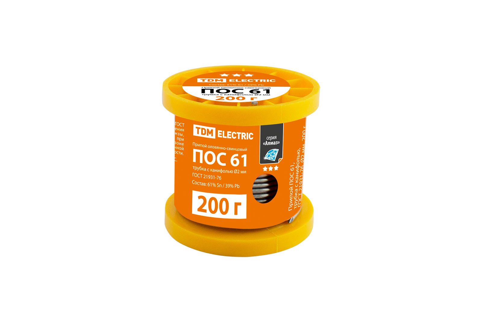 Припой ПОС 61, трубка с канифолью, ГОСТ 21931-76, Ø2 мм, 200 г, катушка, серия "Алмаз" TDM доступен в интернет‑магазине ВольтМаркет в Орске. Покупая у нас, вы получаете дополнительные преимущества:
