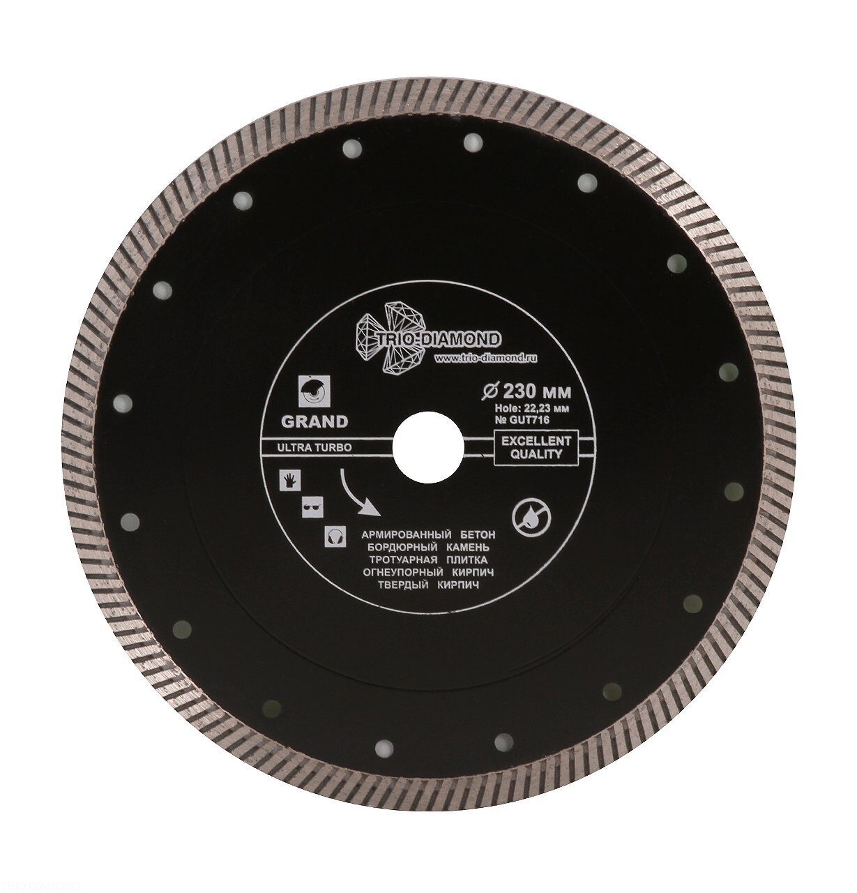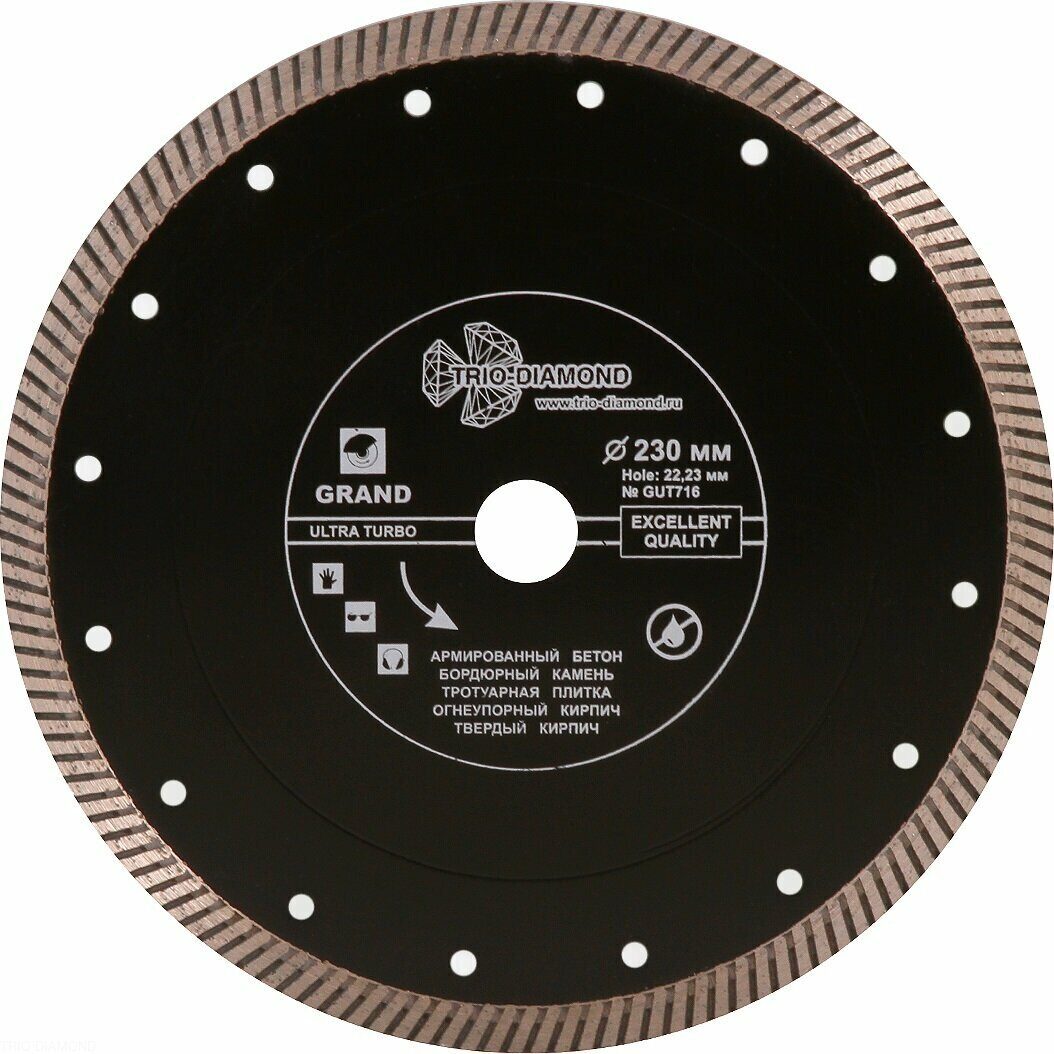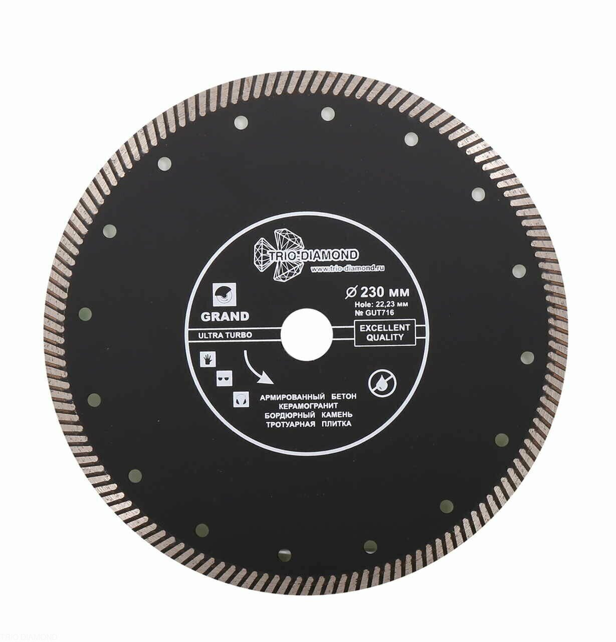 Диск алмазный отрезной 230*22,23 Турбо серия Grand hot press GUT716 Trio-Diamond доступен в интернет‑магазине ВольтМаркет в Орске. Покупая у нас, вы получаете дополнительные преимущества: