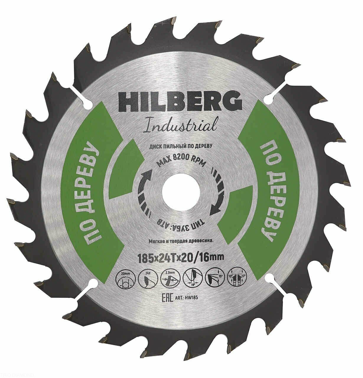 Диск пильный Industrial Дерево 185*20/16*24Т HW185 Hilberg в Орске