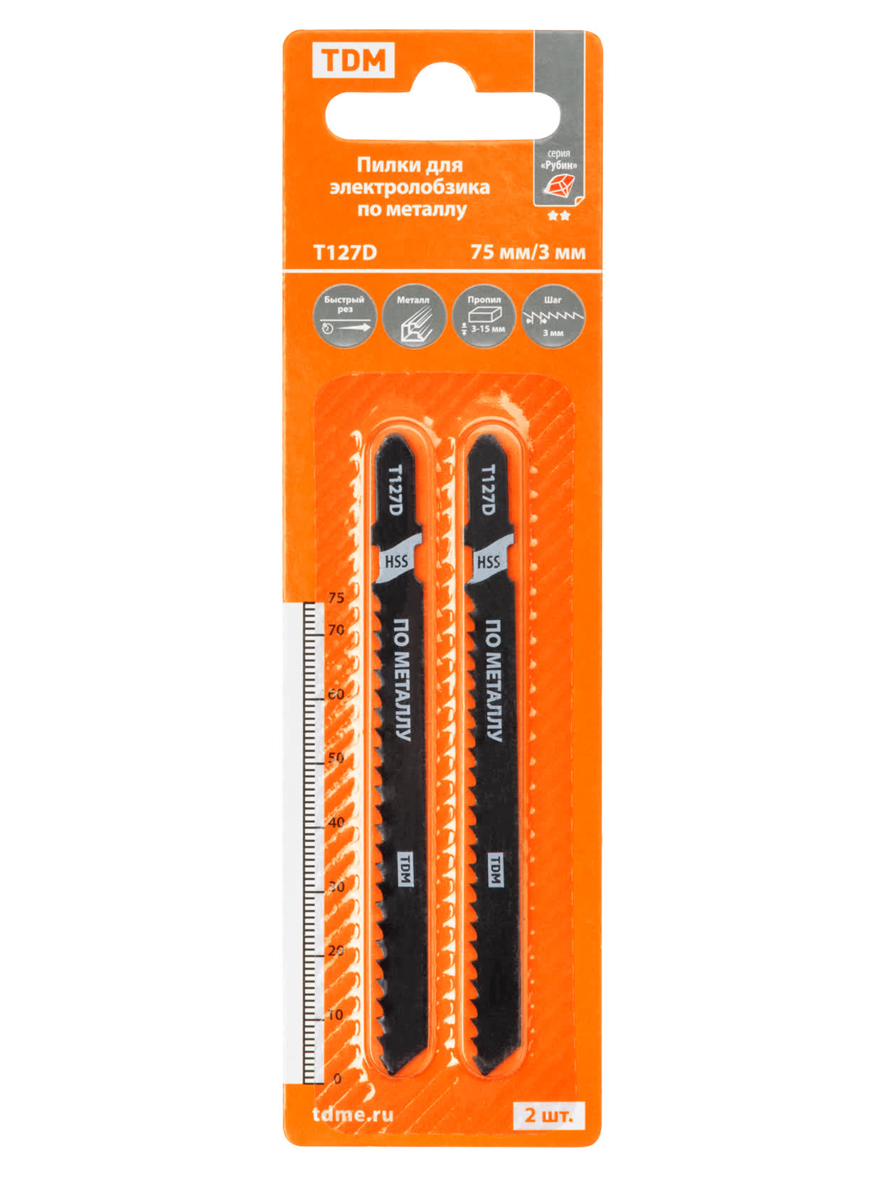 Пилки для электролобзика по металлу, HSS, 75х3 мм, быстрый рез, T127D, 2 шт, "Рубин", TDM доступен в интернет‑магазине ВольтМаркет в Орске. Покупая у нас, вы получаете дополнительные преимущества:
