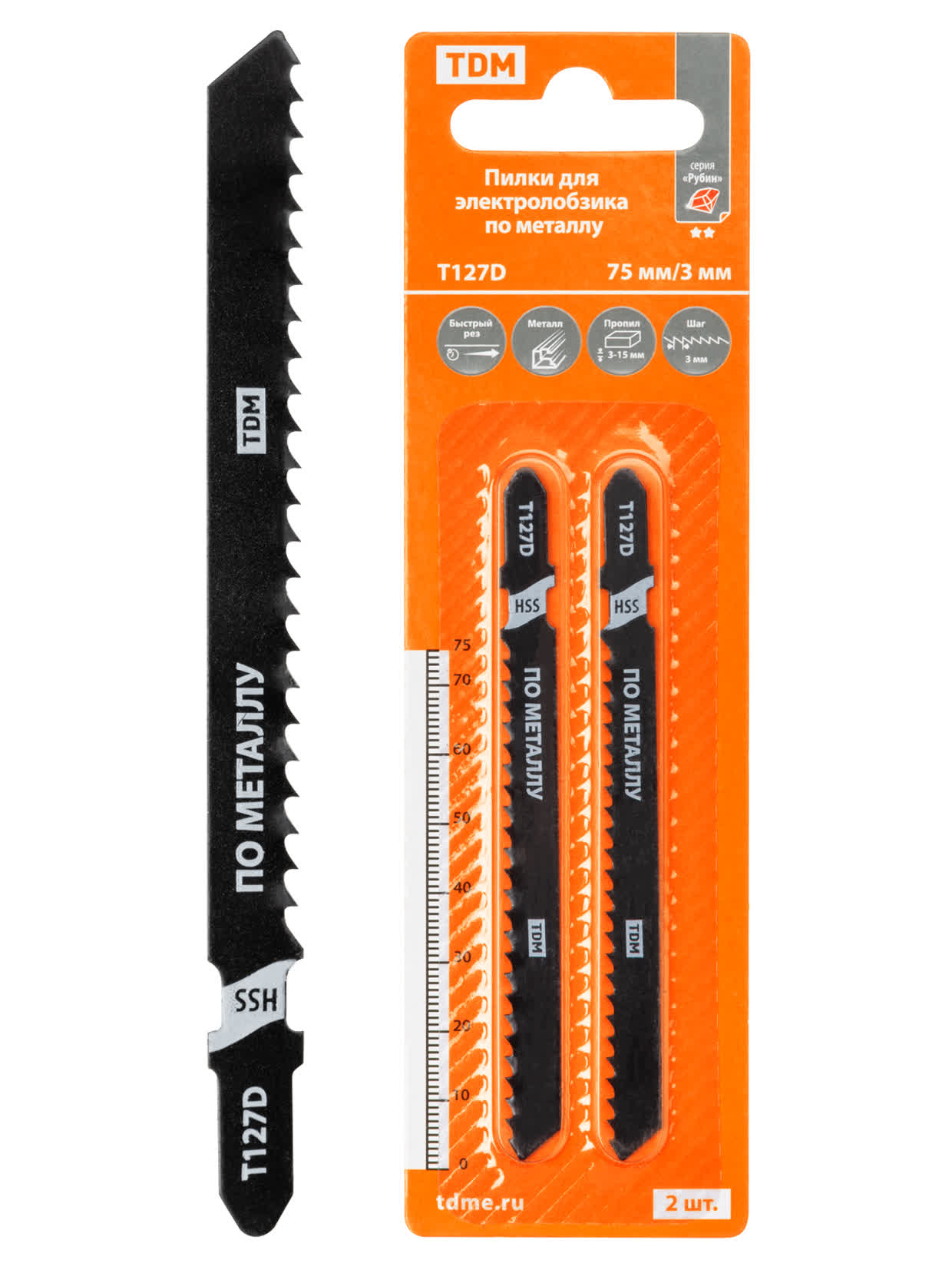 Пилки для электролобзика по металлу, HSS, 75х3 мм, быстрый рез, T127D, 2 шт, "Рубин", TDM в Орске