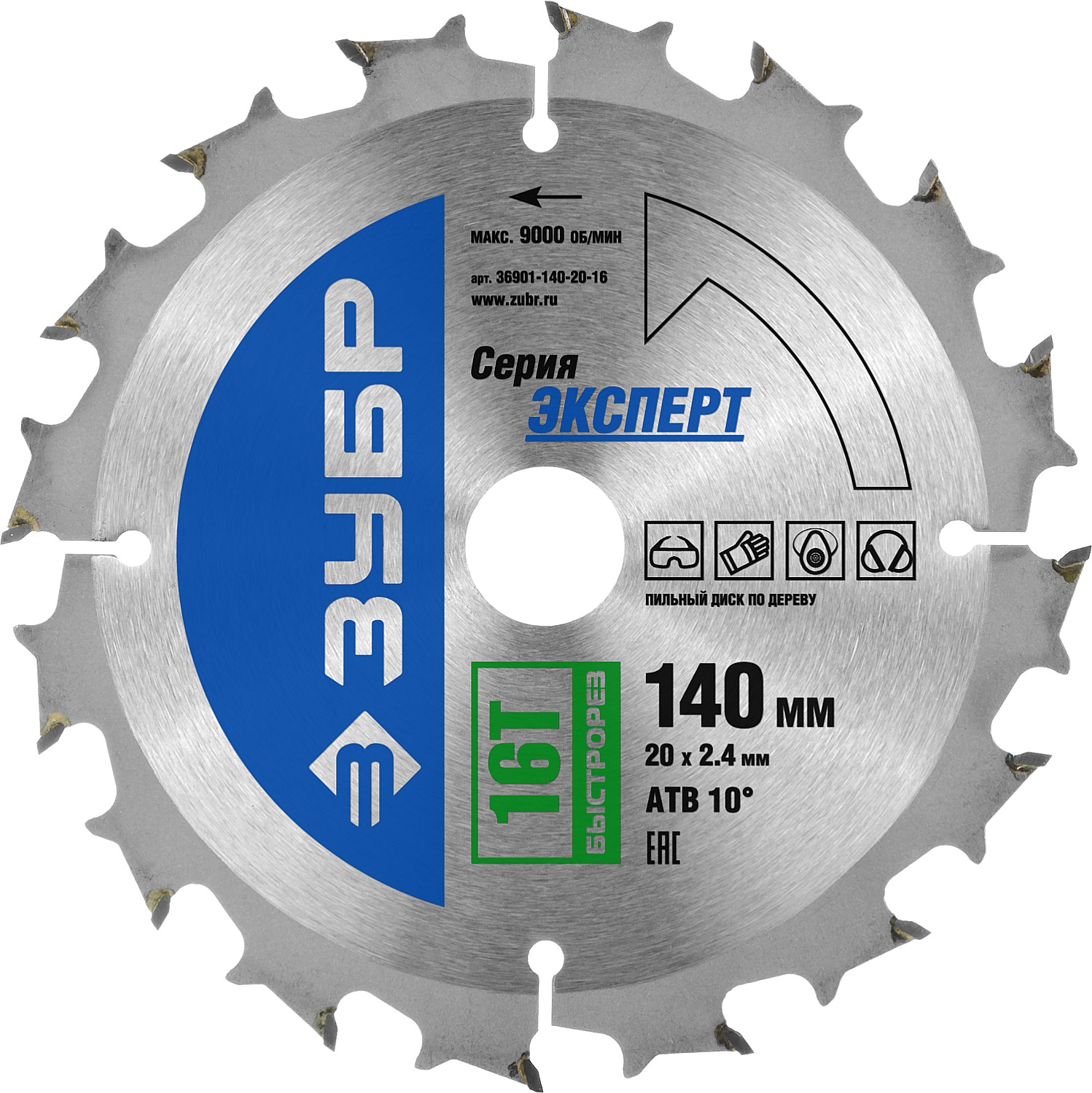 Быстрорез 140 x 20мм 16T, диск пильный по дереву ЗУБР в Орске