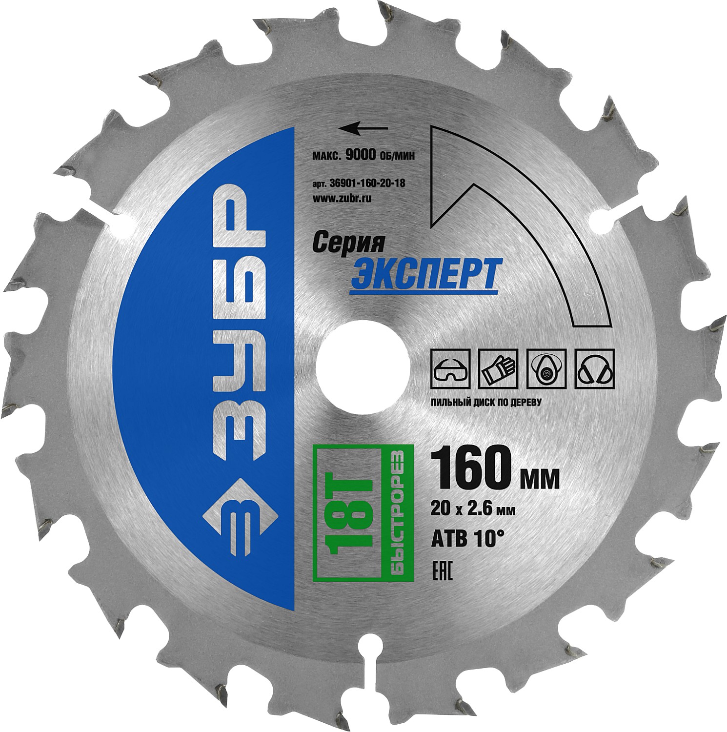Быстрорез 160 x 20мм 18Т, диск пильный по дереву ЗУБР в Орске