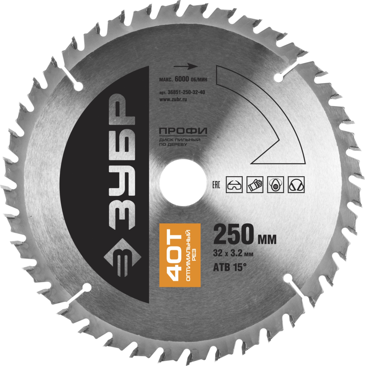 Оптимальный рез 250х32мм 40Т, диск пильный по дереву ЗУБР в Орске