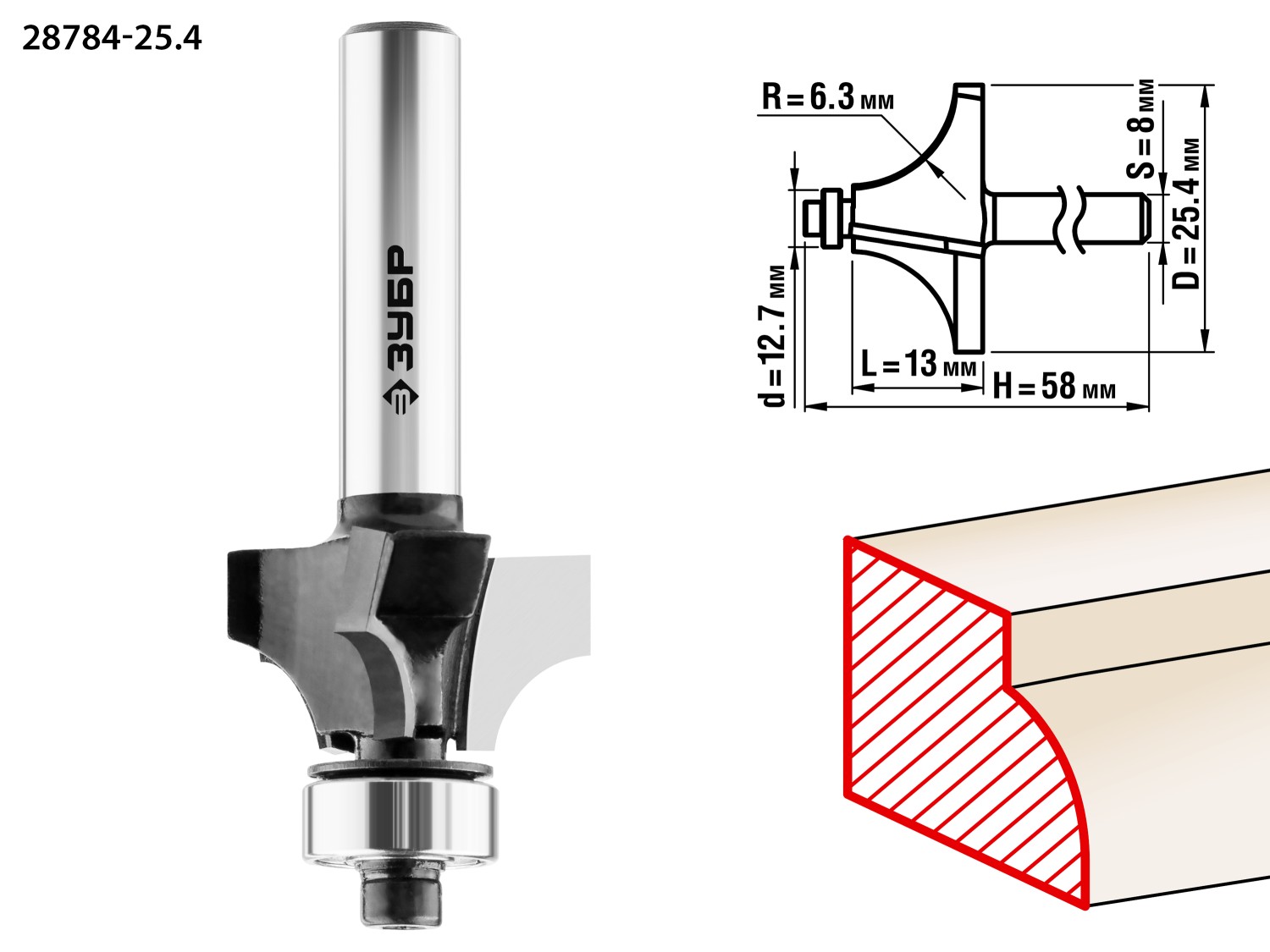 25.4x13мм, радиус 6.3мм, фреза кромочная калевочная №1 ЗУБР в Орске