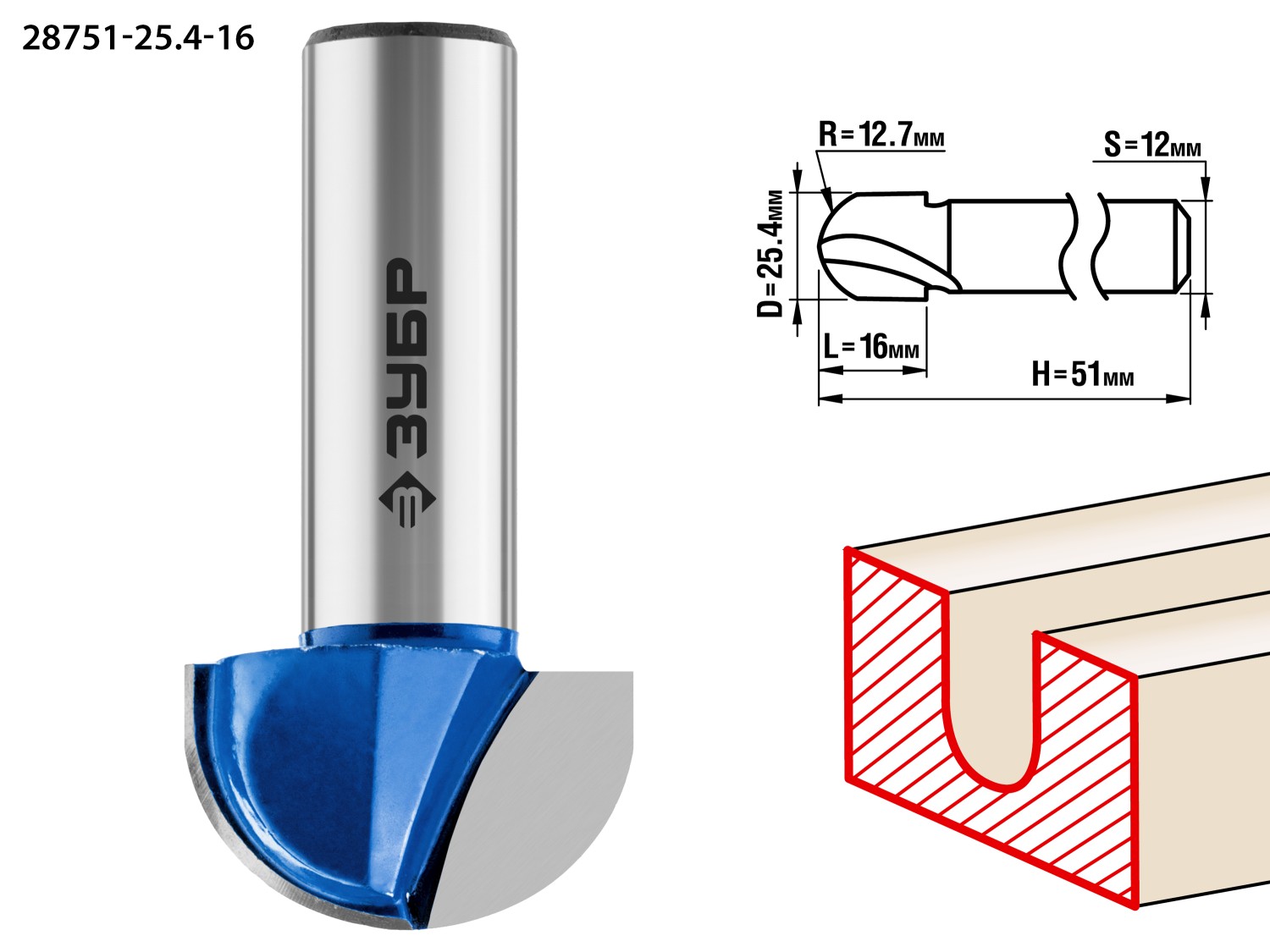 25.4x16мм, радиус 12.7мм, фреза пазовая галтельная ЗУБР в Орске