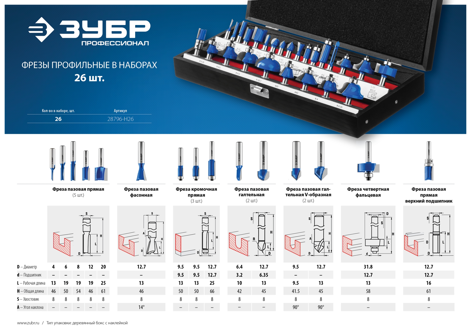 26шт, набор профильных фрез по дереву ЗУБР в Орске