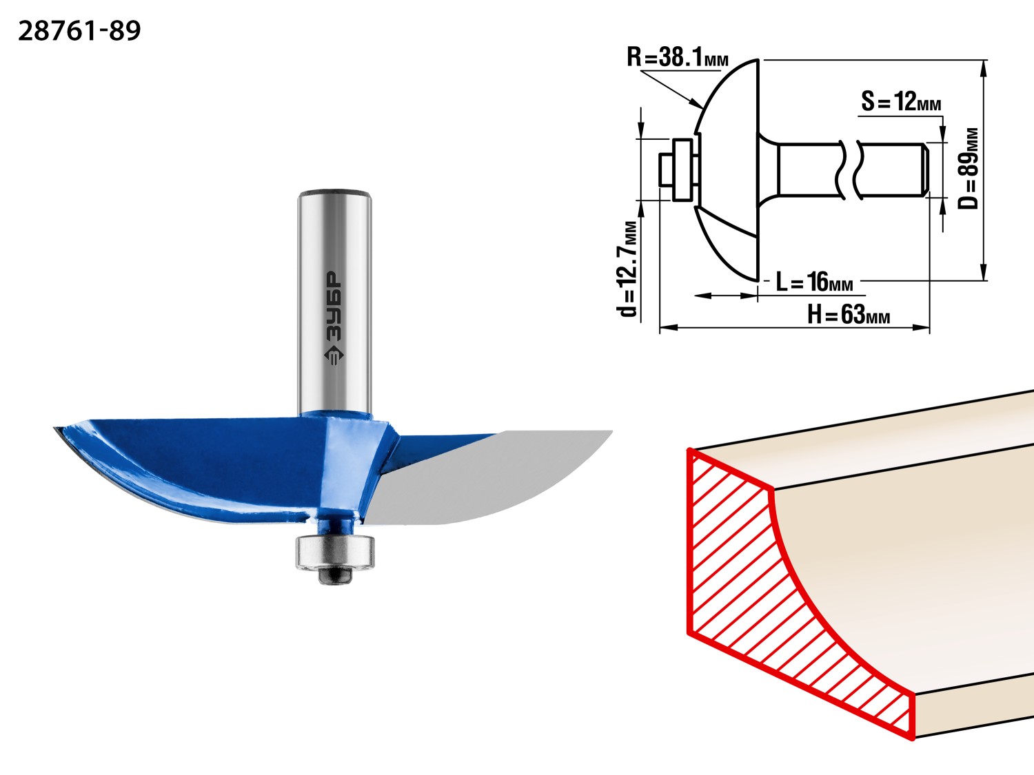 89x16мм, радиус 38.1мм, фреза фигирейная №2 ЗУБР в Орске
