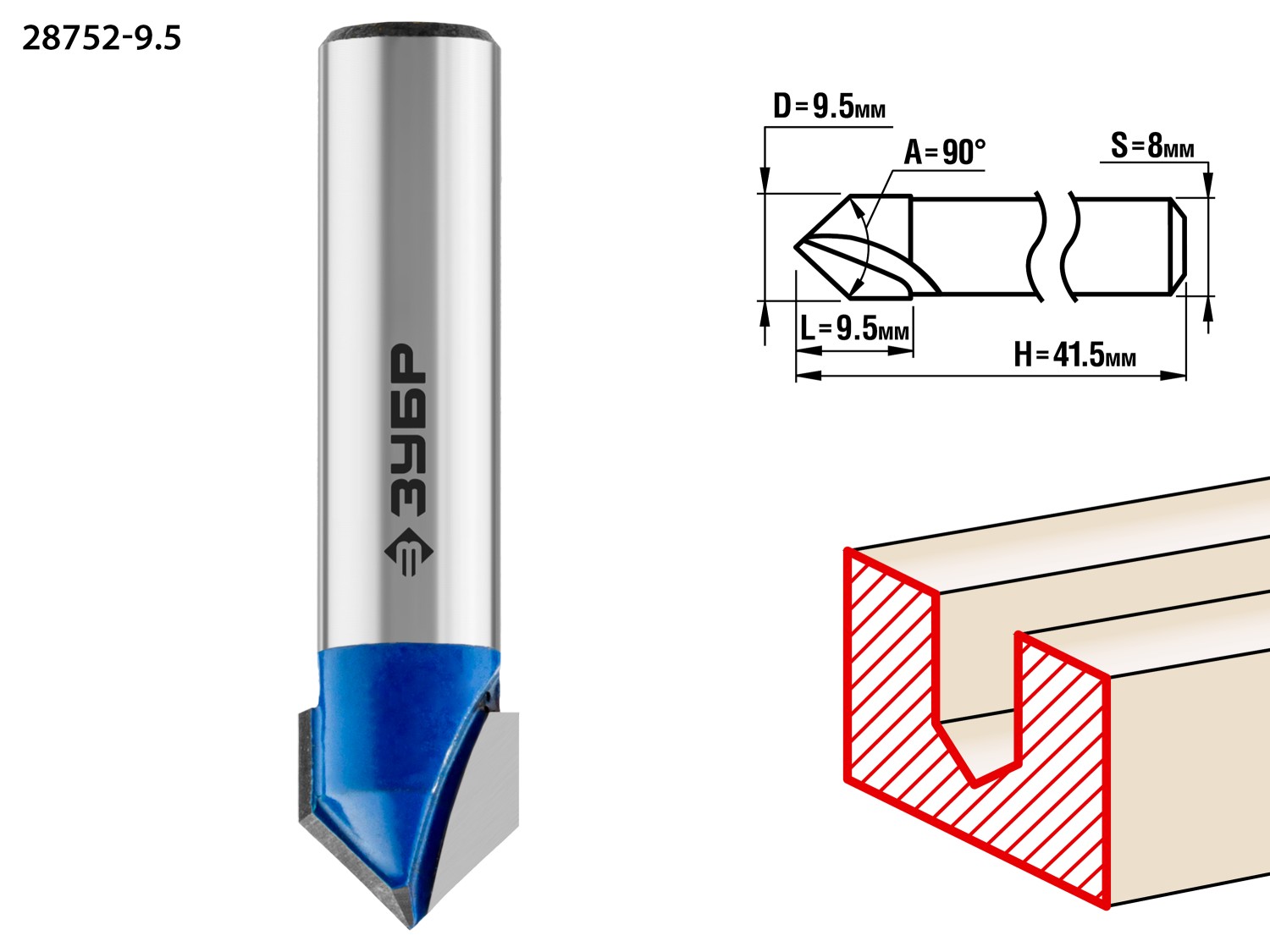 9.5x9.5мм, угол 90°мм, фреза пазовая галтельная V-образная ЗУБР в Орске