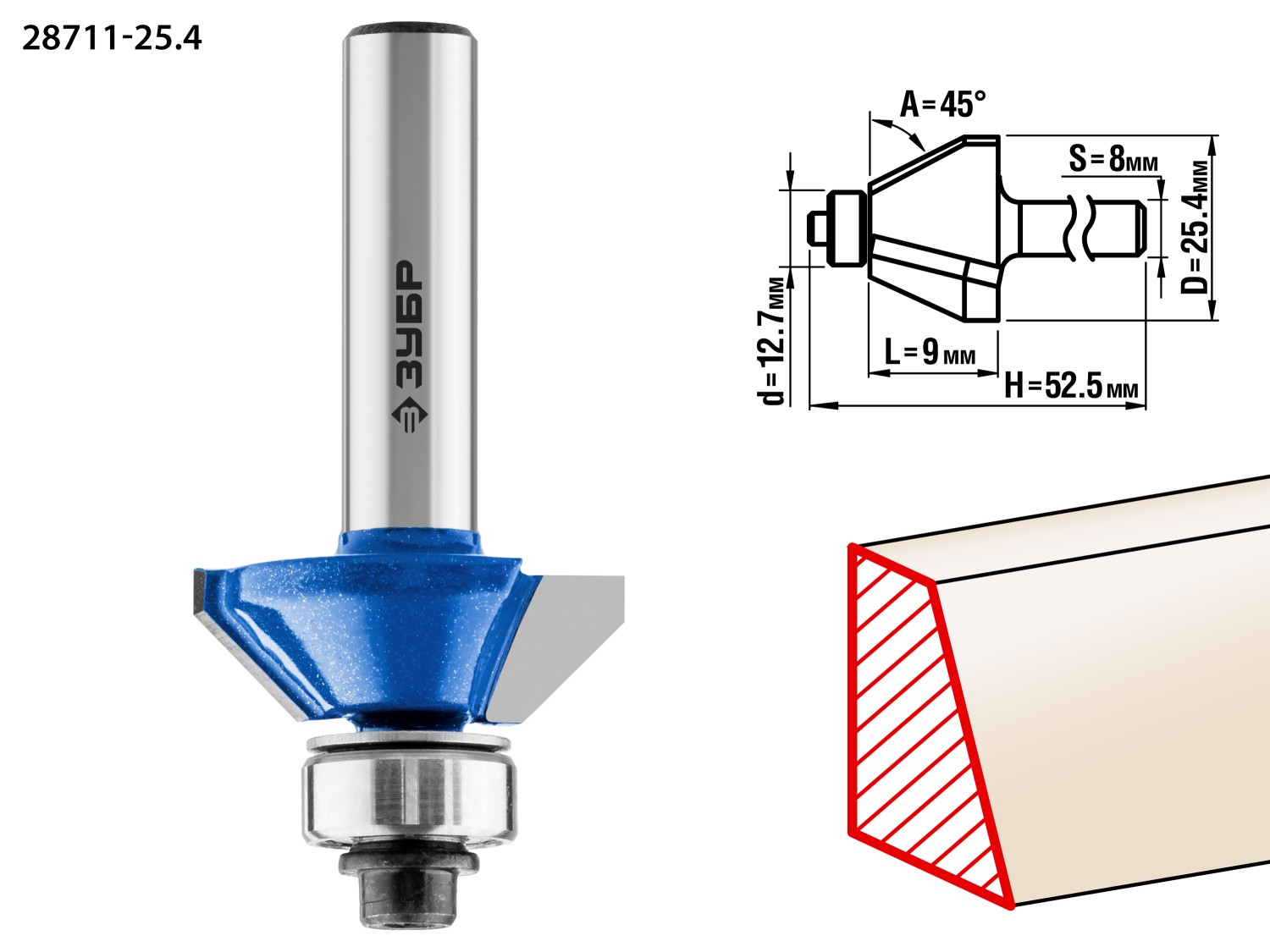 Кромочная калевочная фасочная фреза Профессионал №9, 25.4x8 мм ЗУБР в Орске