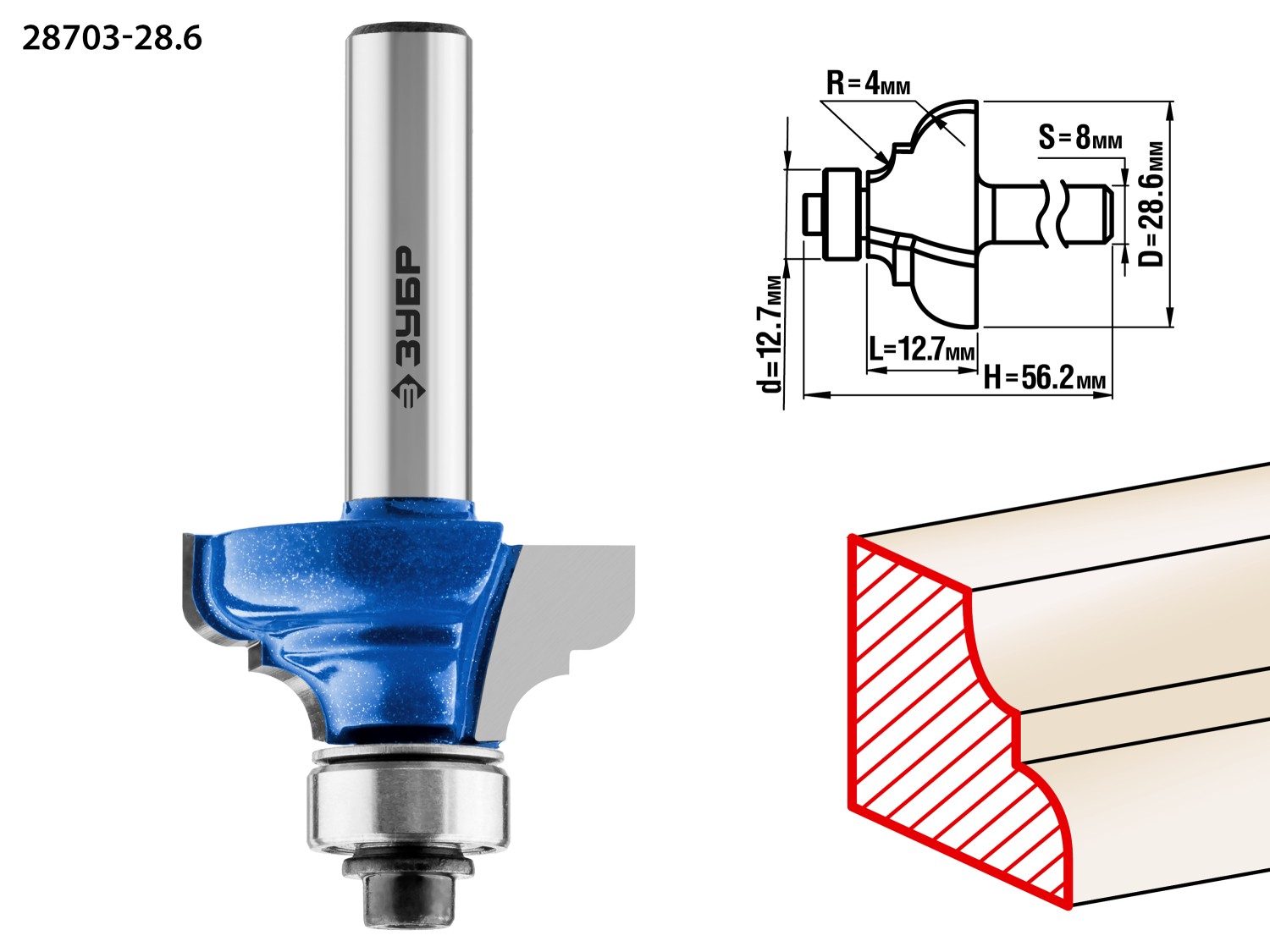 Кромочная калевочная фреза Профессионал №3, 28.6x12.7 мм, радиус 4 мм ЗУБР в Орске