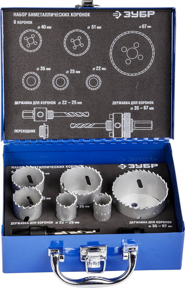 6шт, набор коронок биметаллических(22,25,35,40,51,67) ЗУБР доступен в интернет‑магазине ВольтМаркет в Орске. Покупая у нас, вы получаете дополнительные преимущества: