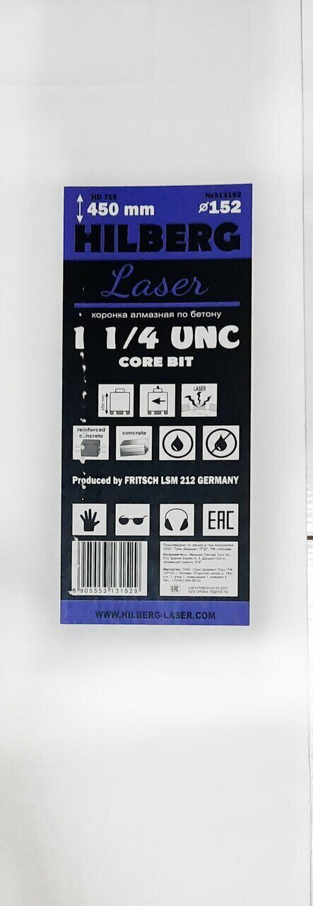 Коронка алмазная 152*450 Laser 1 1/4 UNC HD719 Hilberg в Орске