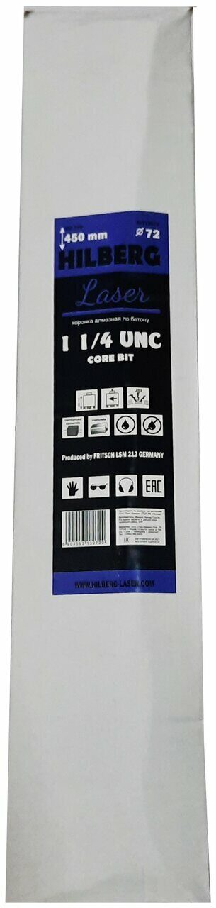 Коронка алмазная 72*450 Laser 1 1/4 UNC HD709 Hilberg в Орске