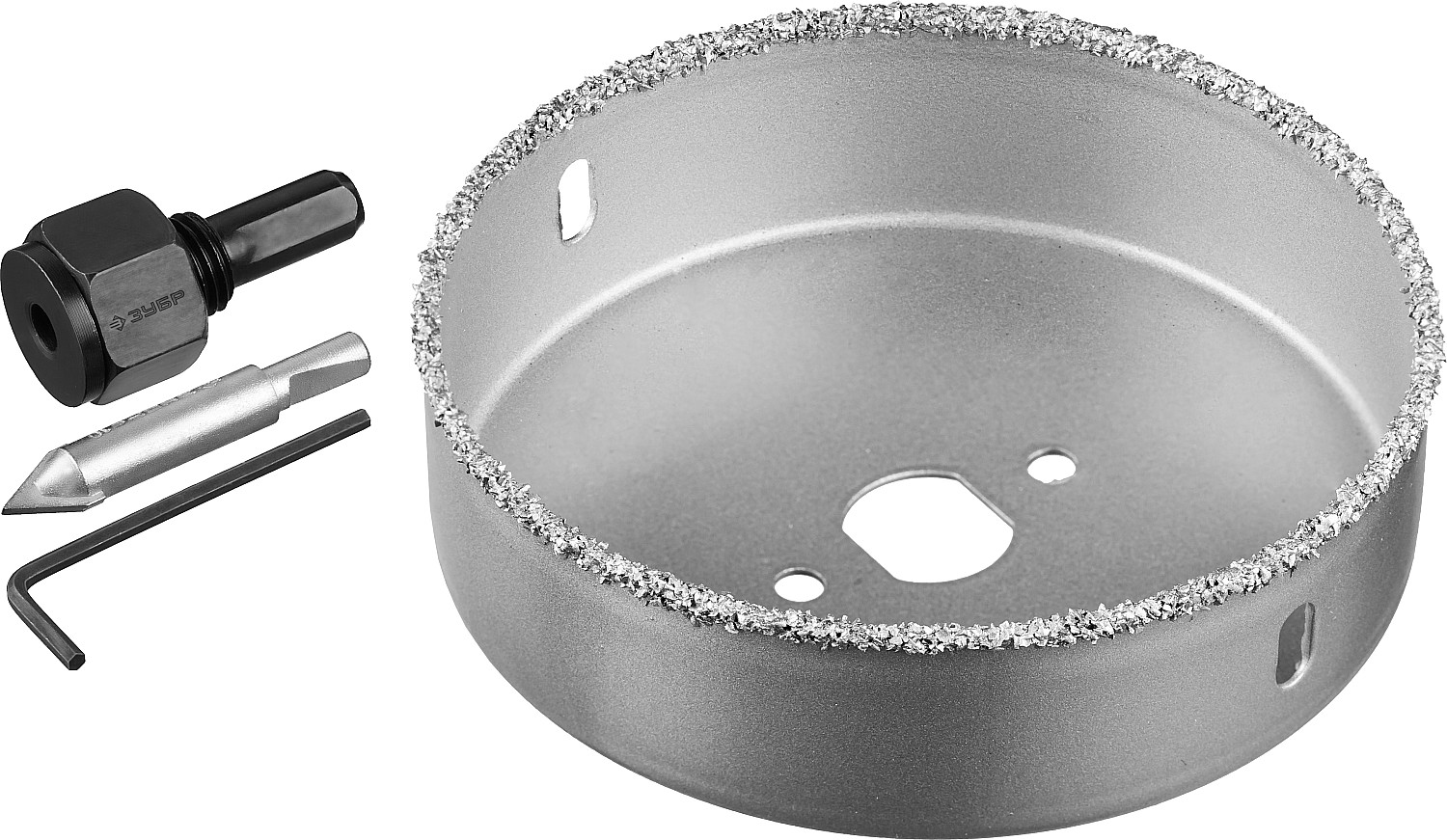 Коронка-чашка "Профессионал" c карбид-вольфрамовым нанесением, 102 мм, высота 25 мм, в сборе с державкой и сверлом ЗУБР в Орске