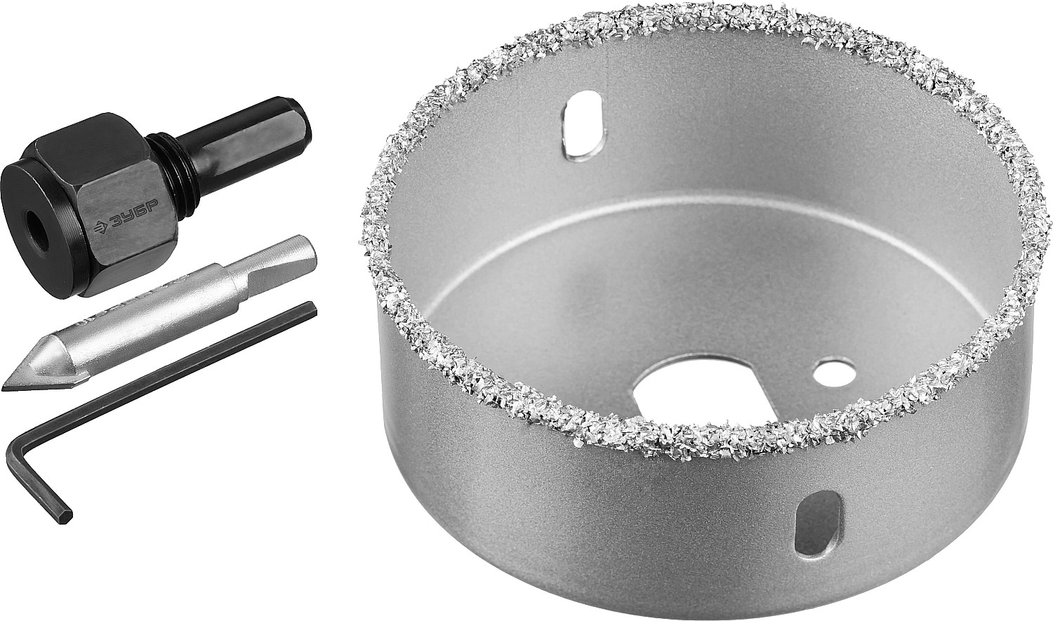 Коронка-чашка "Профессионал" c карбид-вольфрамовым нанесением, 76 мм, высота 25 мм, в сборе с державкой и сверлом ЗУБР в Орске