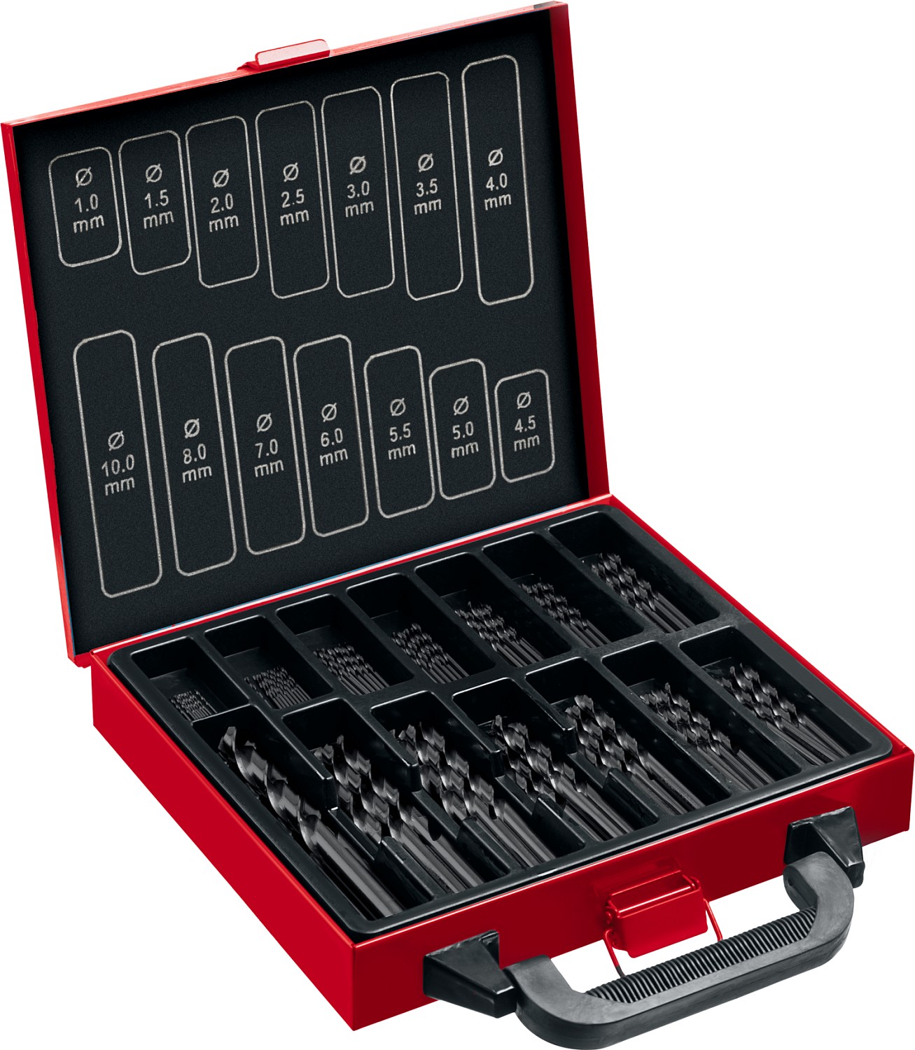 В набор для сверления металла обычно входят сверла из быстрорежущей стали (HSS) различного диаметра, предназначенные для работы с металлами разной плотности.