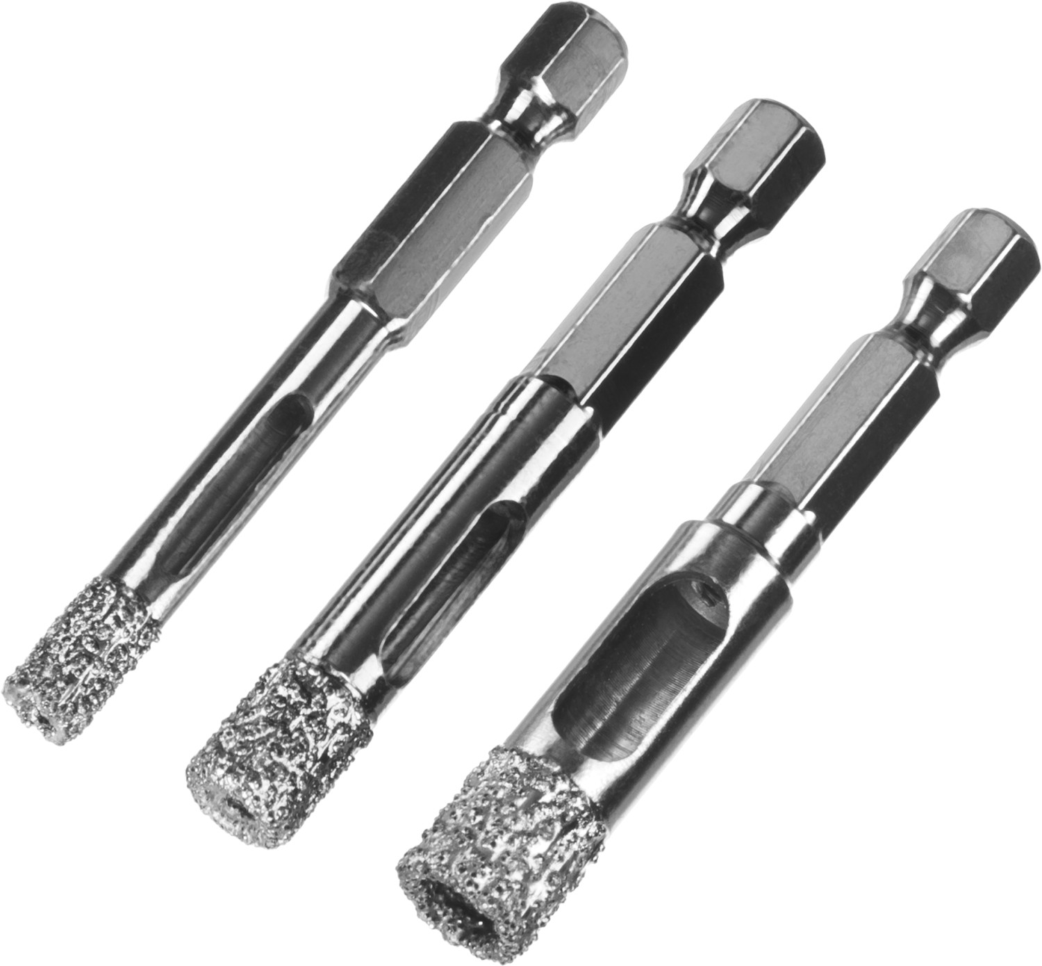 Набор сверл алмазных по керамограниту, вакуумное Спекание, Профессионал алмазов, d=6, 8, 10 мм, хвостовик HEX 1/4", Профессионал ЗУБР в Орске