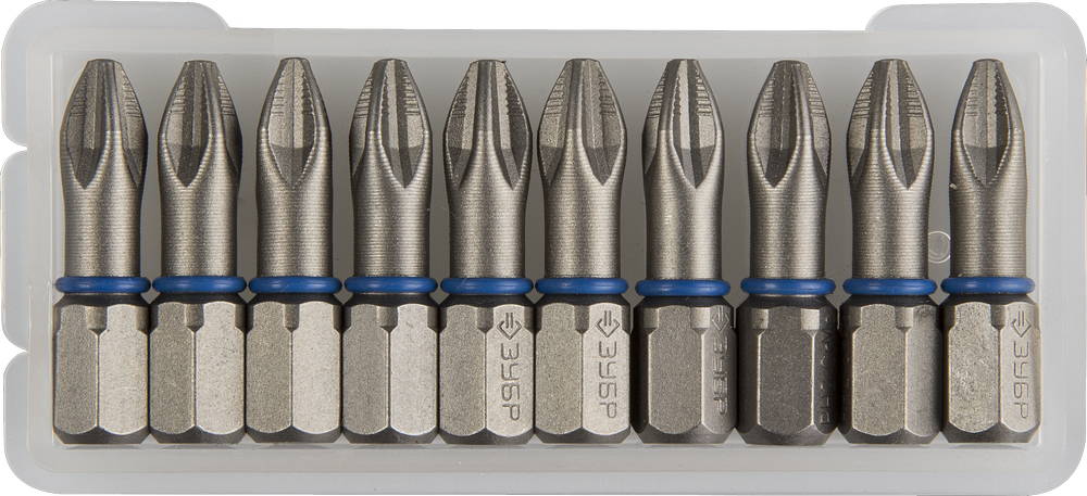 Биты "ЭКСПЕРТ" торсионные кованые, обточенные, хромомолибденовая сталь, тип хвостовика C 1/4", PZ2, 25мм, 10шт ЗУБР в Орске