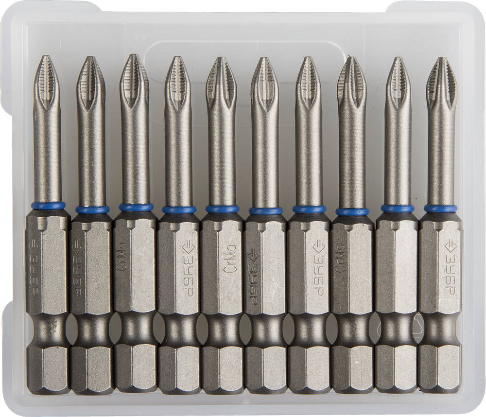Биты обычно изготавливаются из стали S2, хром-ванадиевой стали или высокоуглеродистой стали. Такие материалы обеспечивают прочность и долговечность оснастки.