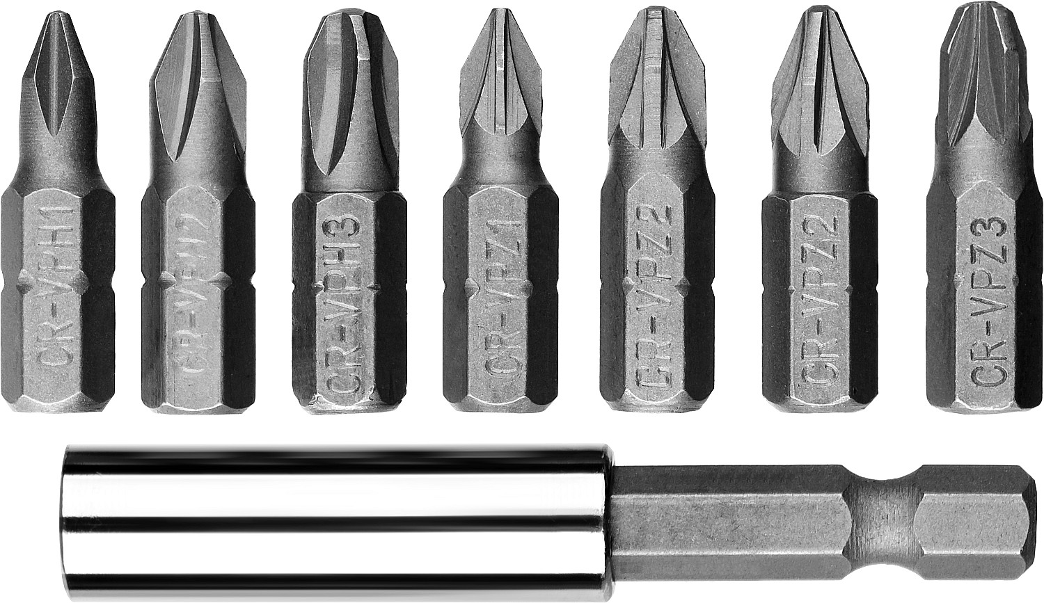 Биты обычно изготавливаются из стали S2, хром-ванадиевой стали или высокоуглеродистой стали. Такие материалы обеспечивают прочность и долговечность оснастки.