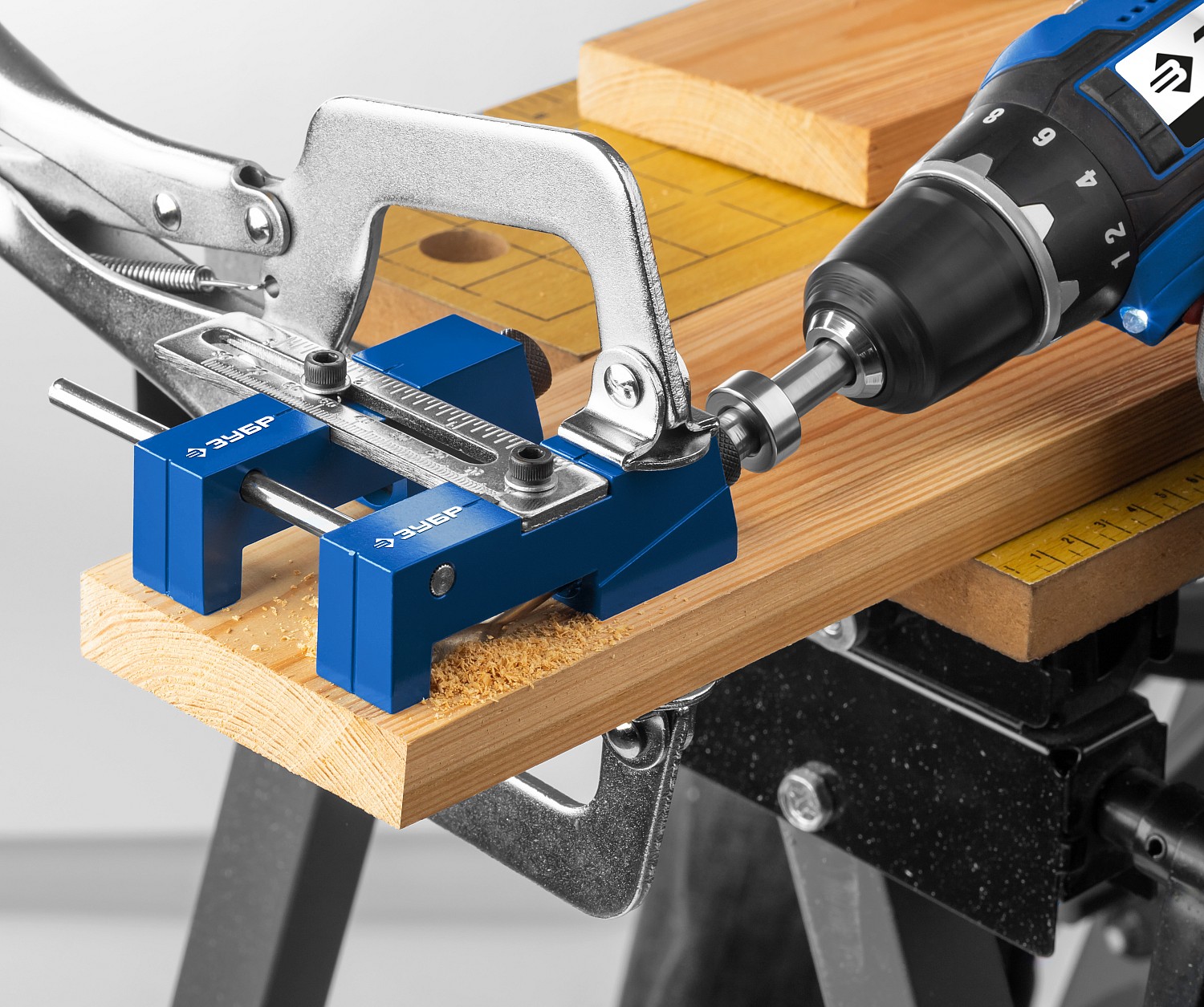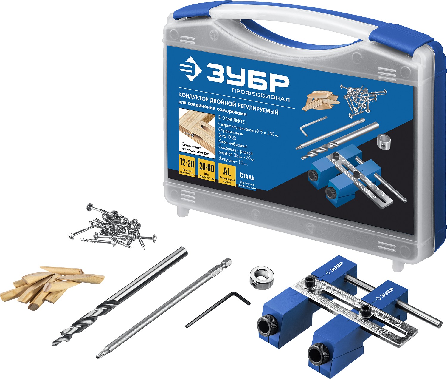 Кондуктор регулируемый для глухих отверстий, два отверстия, в кейсе ЗУБР в Орске