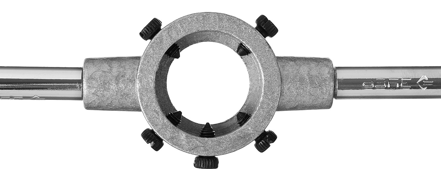 Плашкодержатели с воротком обеспечивают более удобный и равномерный нажим при нарезании резьбы, что облегчает процесс и повышает качество резьбы.