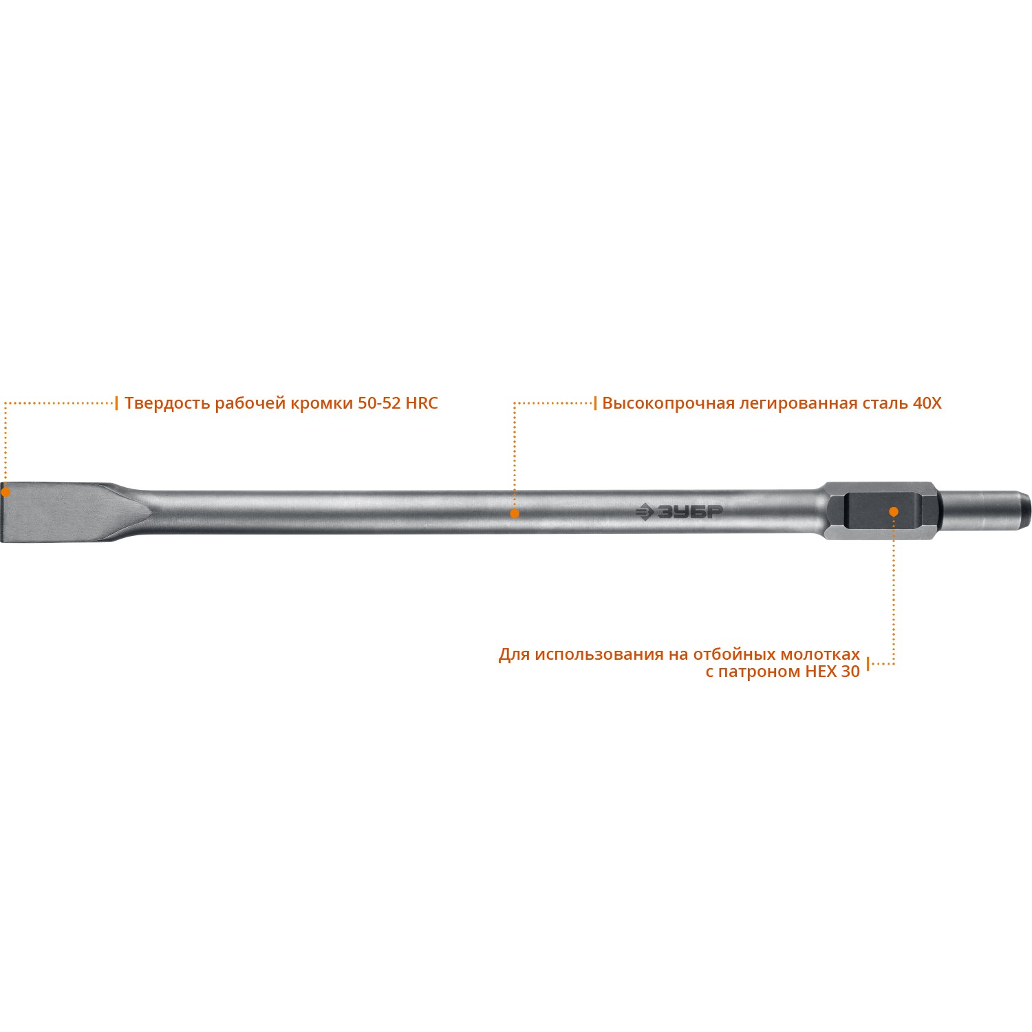БУРАН HEX 30 Зубило плоское 35 х 600 мм ЗУБР в Орске