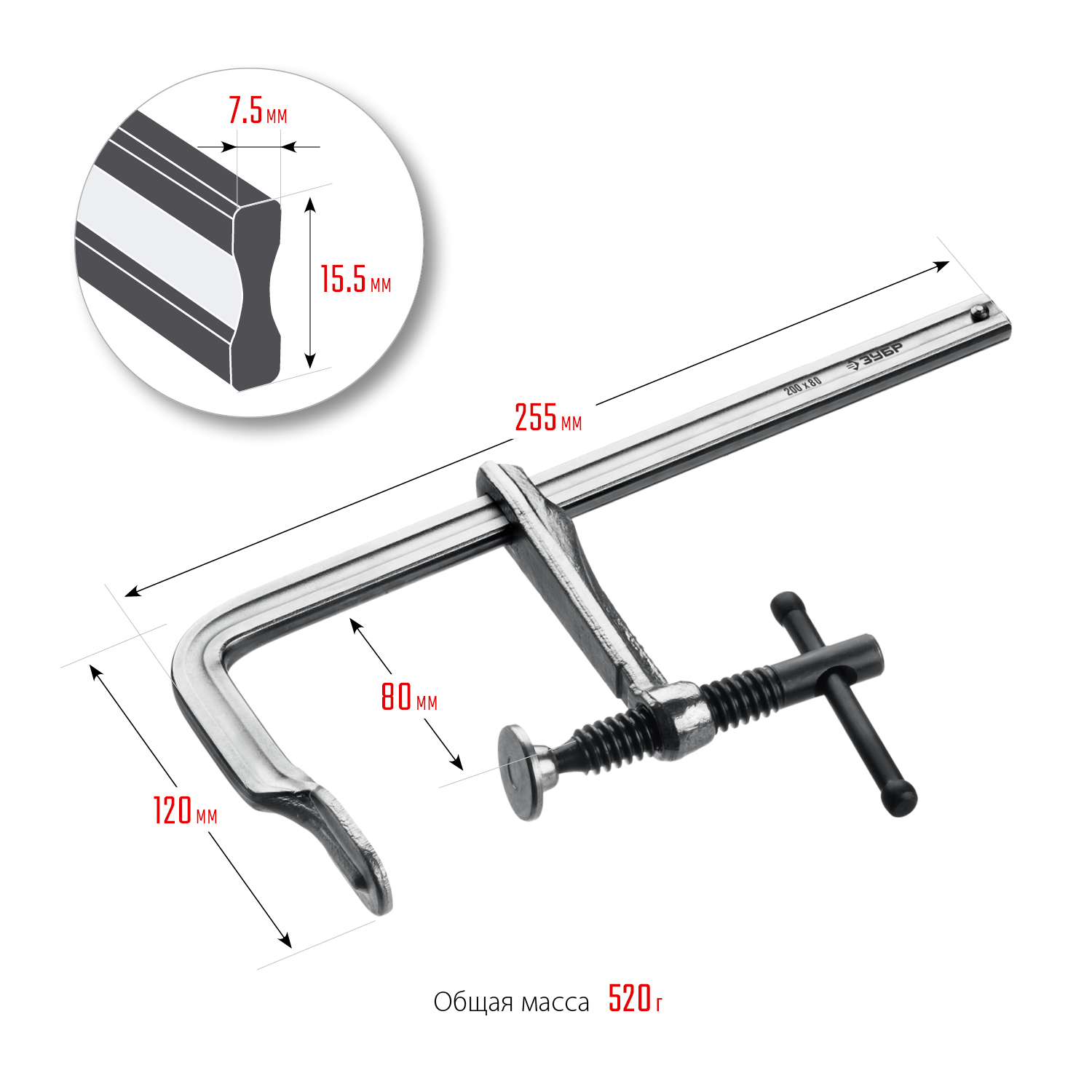 КС-200/80 струбцина тип F 200/80 мм, ЗУБР в Орске