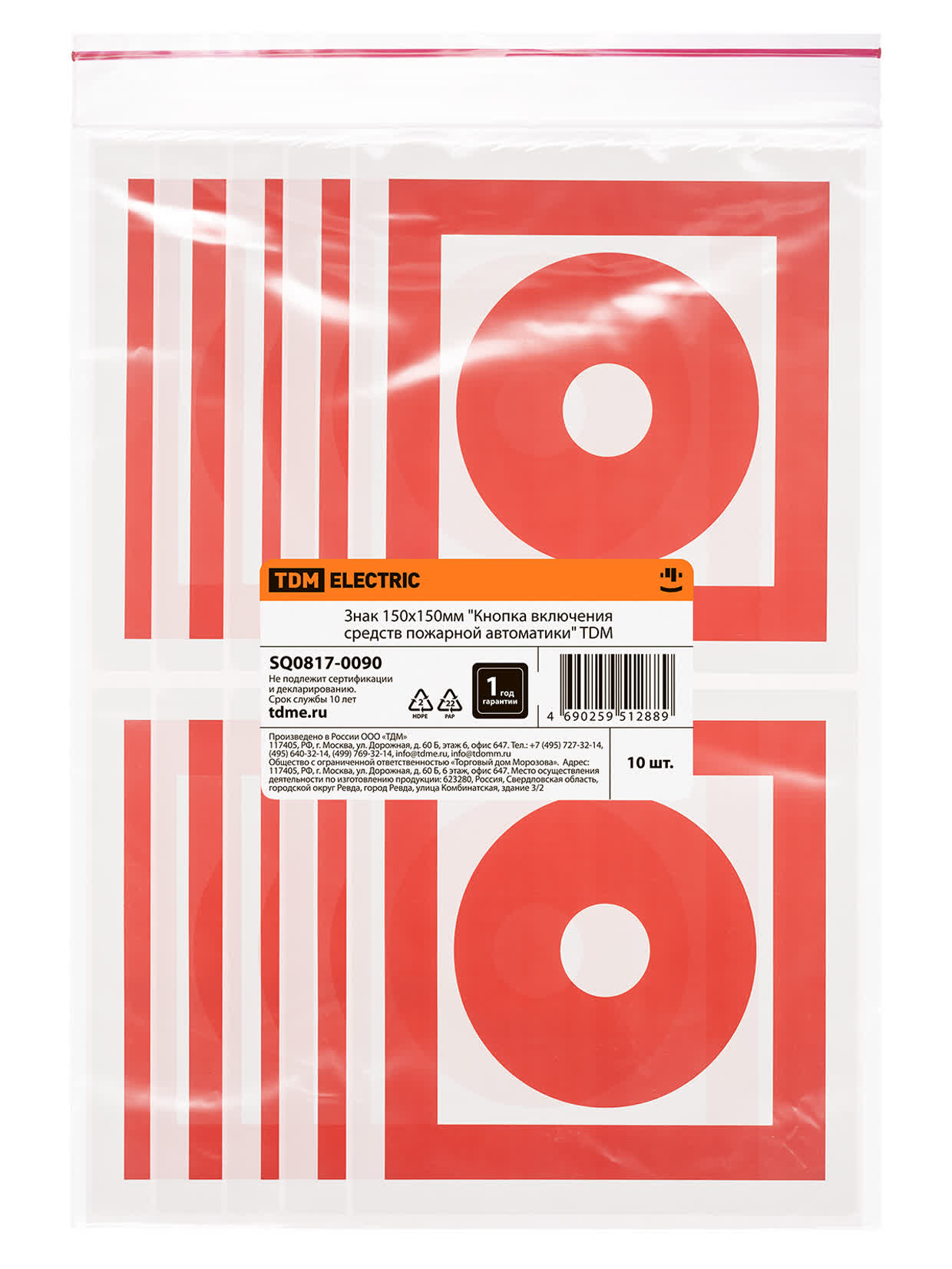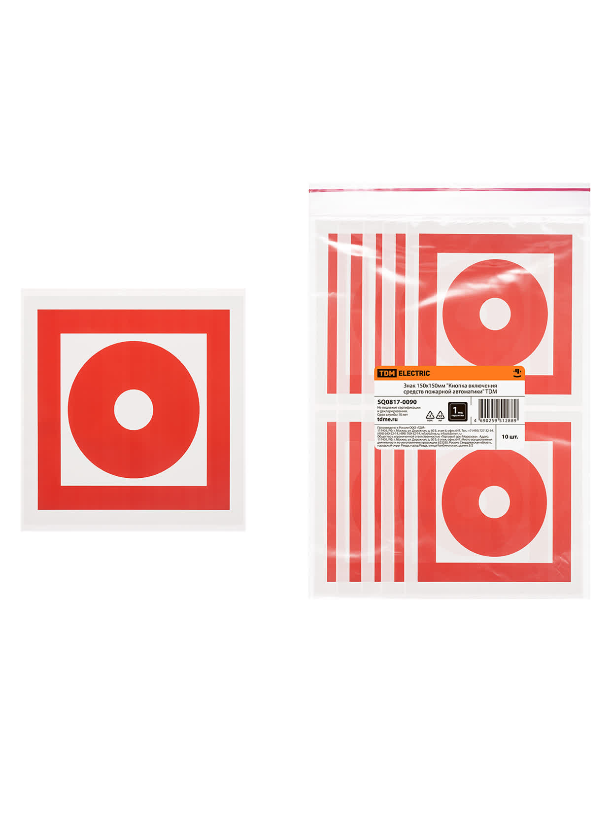 Знак 150х150мм "Кнопка включения средств пожарной автоматики" TDM в Орске