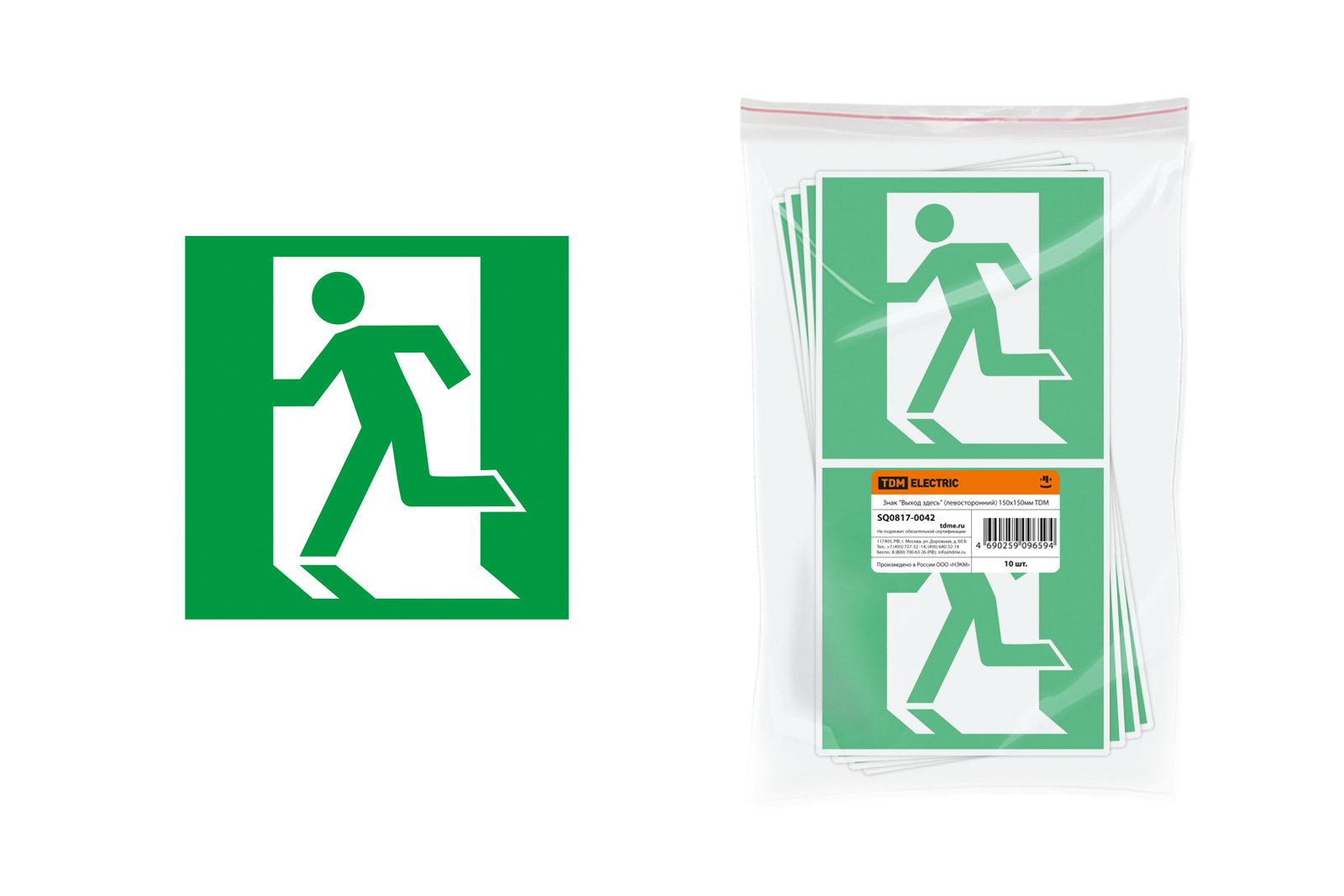 Знак "Выход здесь" (левосторонний) 150х150мм TDM доступен в интернет‑магазине ВольтМаркет в Орске. Покупая у нас, вы получаете дополнительные преимущества: